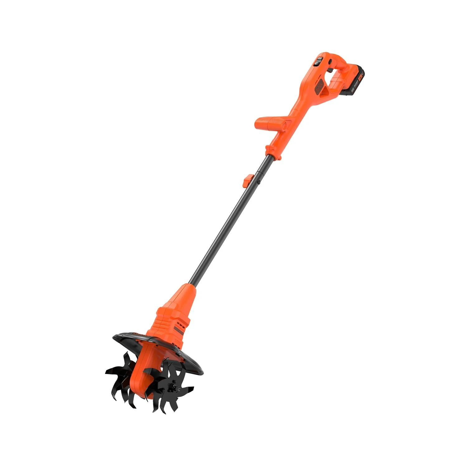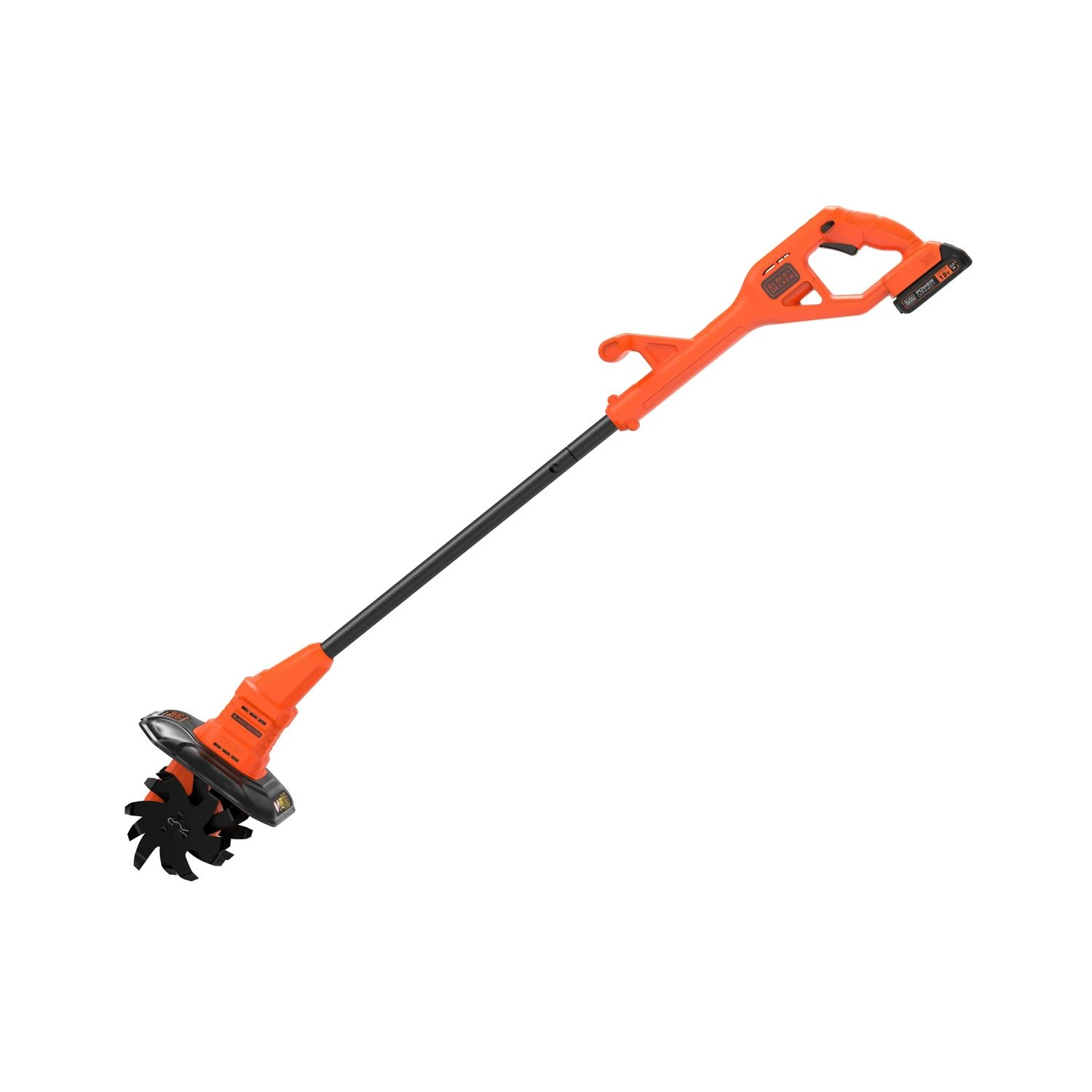 The BLACK + DECKER POWERCONNECTâ„¢ Tiller is designed to make light work of turning over soil and removing weeds to create healthy soil. It is narrow enough to maneuvre in and around small beds and borders. Fitted with an additional handle for increased comfort and easy handling.