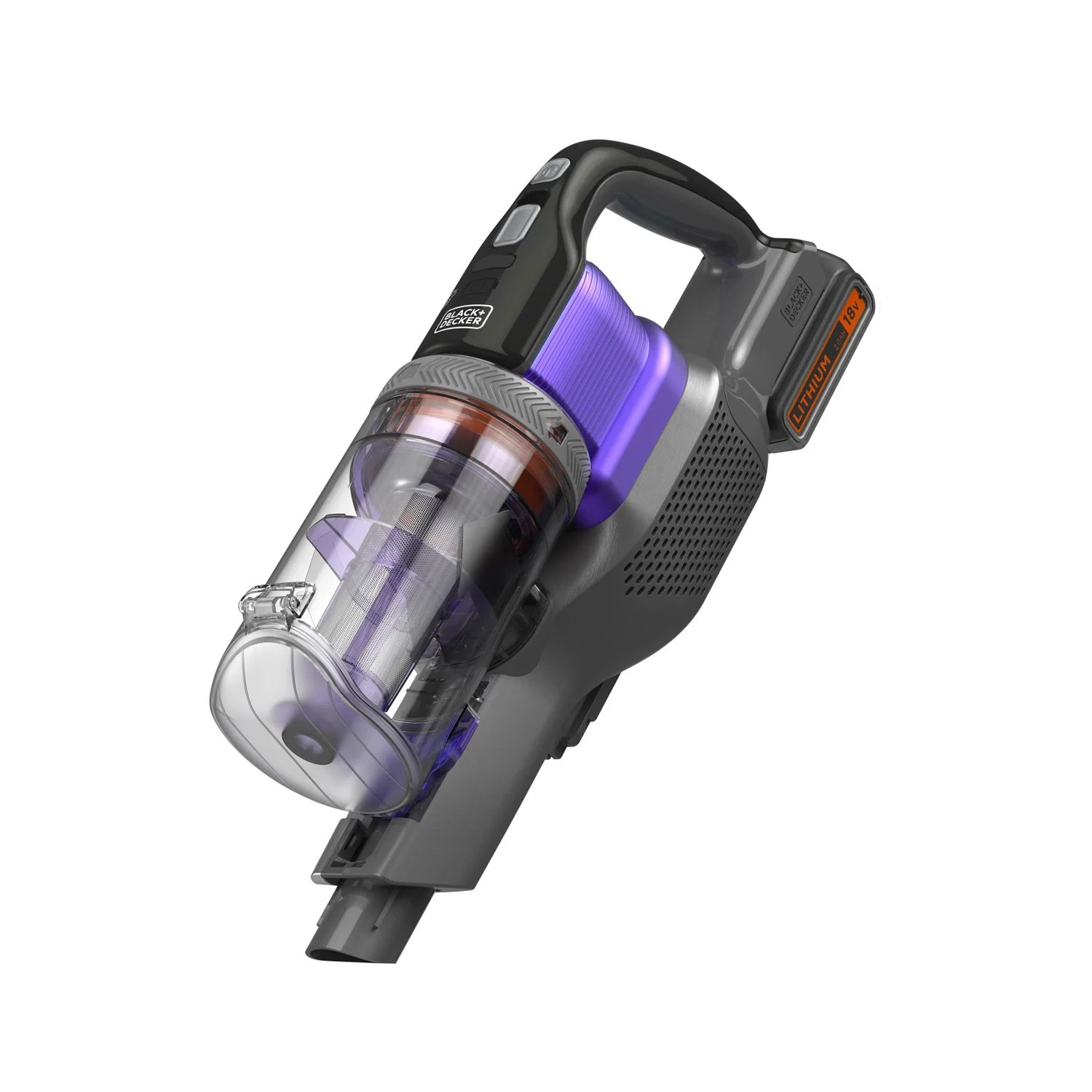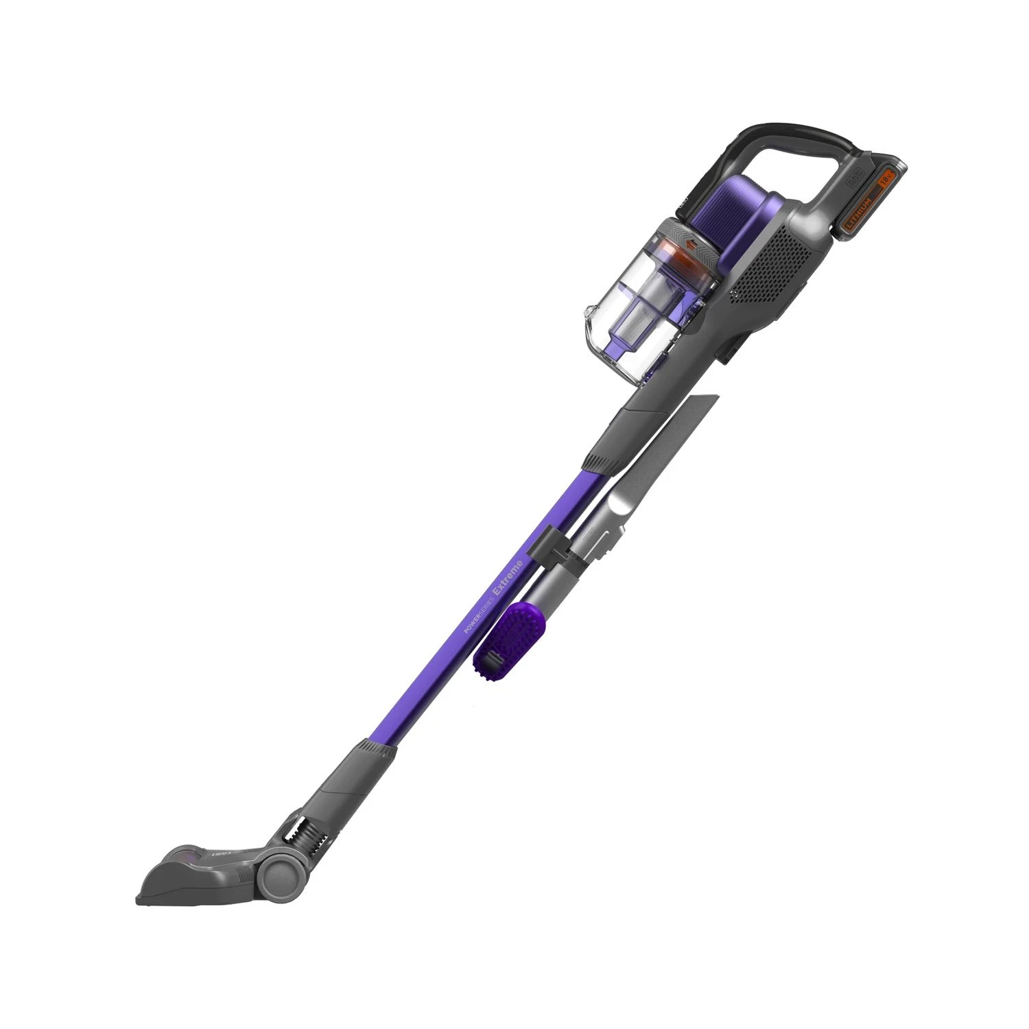 The BLACK & DECKER POWERSERIES Extremeâ„¢ Pet Vacuum Cleaner is engineered to help get jobs done quickly, easily and efficiently. With up to 58 minutes runtime on a single charge the BLACK+DECKER 18V POWERSERIESâ„¢ Extreme stick vac. This 4-in-1 stick vac has a powered anti-tangle beater bar giving you a deep and powerful clean with less than 5% hair wrap and with up to 70% more pick up on carpet*, leaving your home spotless. Ideal for pet owners, get rid of the dog and cat hair with ease with the pet brush. The three-speed settings allow you to vary your speed to suit the job at hand, use the high speed setting for a maximum deep clean, perfect for carpet. Its transparent easy empty bowl allows you to pop the dirt out in one easy move keeping your hands clean of dust and debris.