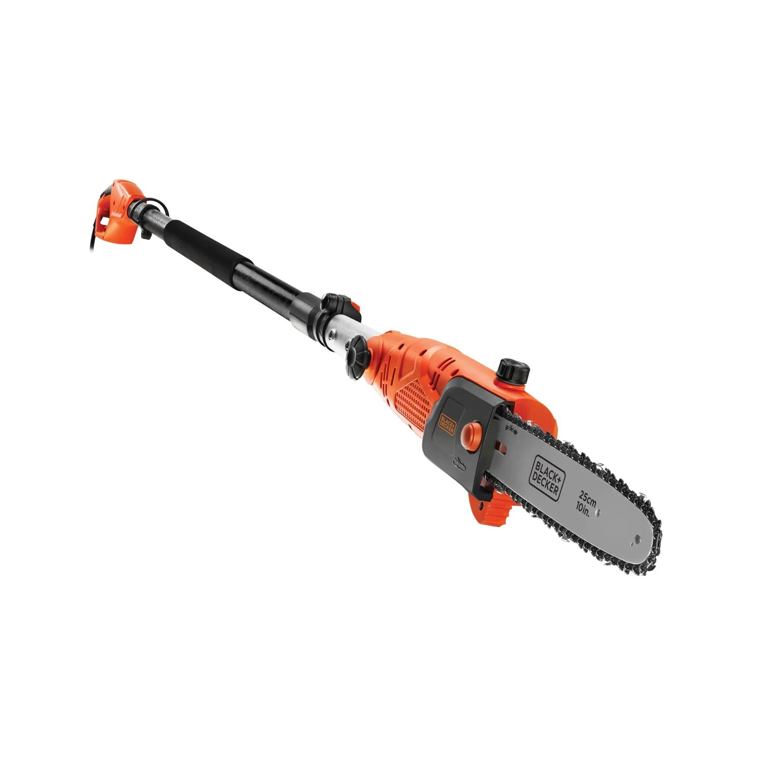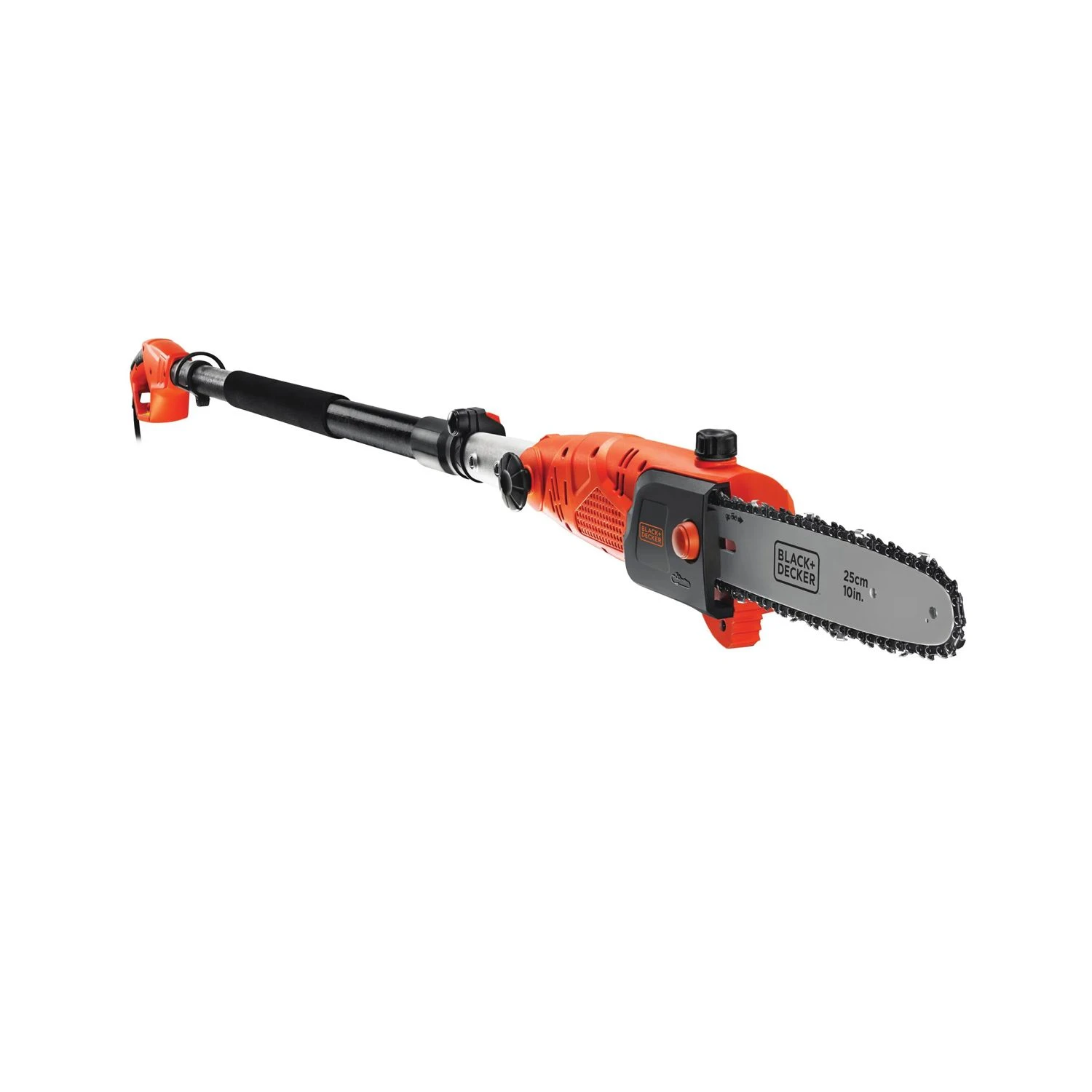 The Black and Decker PS7525 Corded Pole Saw has a pivoting head maximising access and ease of cutting in the most difficult to reach places. The integrated auto oil system lubricates the chain, for reduced wear and greater cutting efficiency, and the large oil tank has a viewing window to minimise spillages when filling.