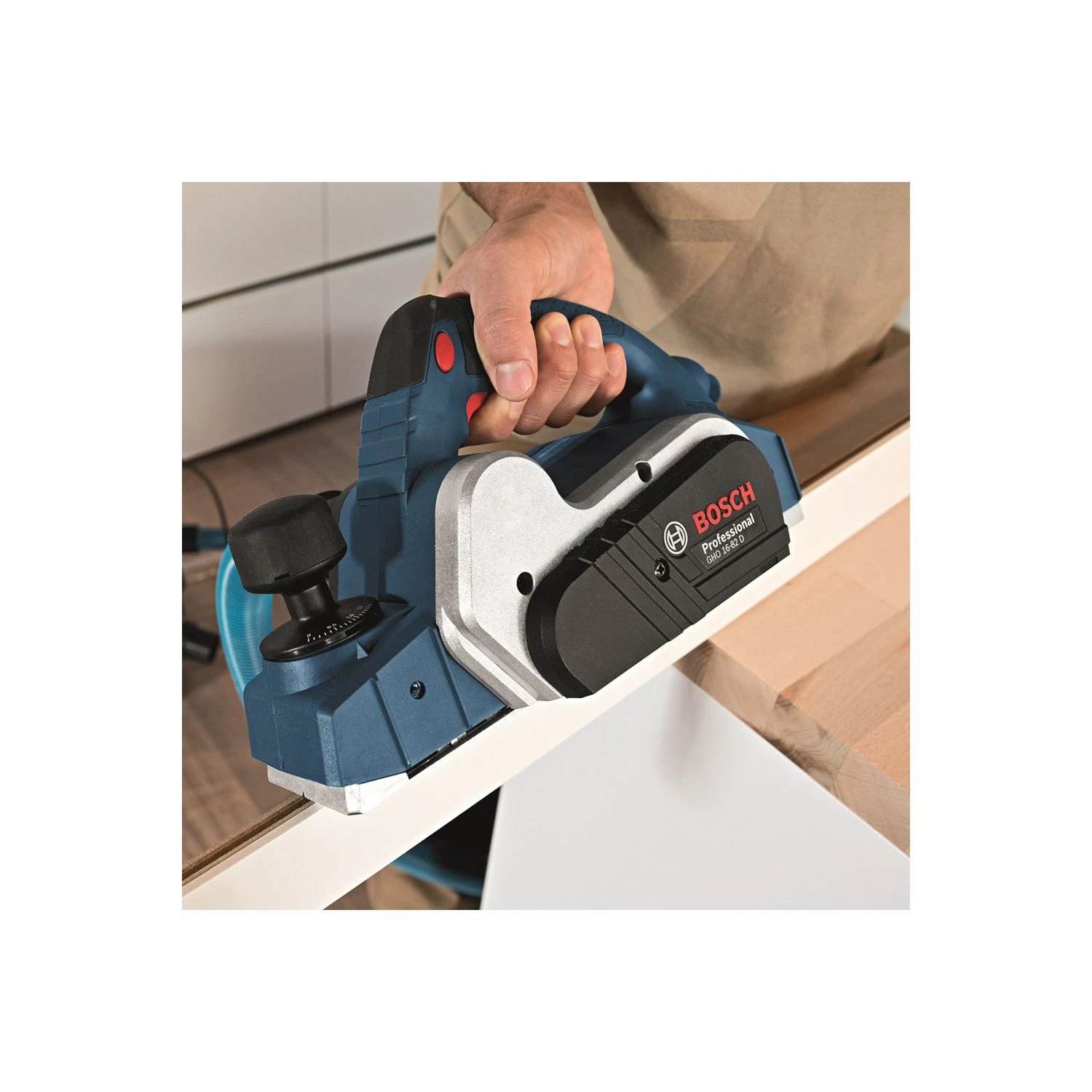 The Bosch GHO 16-82 has a 630W motor for cutting depths up to 1.6 mm. It has an RPM of up to 18,000 producing a quick removal rate and optimum surface quality. It is equipped with a sturdy, flat aluminium base plate for the best planing results. Equipped with a sharp, durable Woodrazor blade with quick blade change. Simple adjustment to front shoe provides accuracy and stability. This upgraded version of the 15-82 has a well designed handle with soft grip for greater comfort during use.