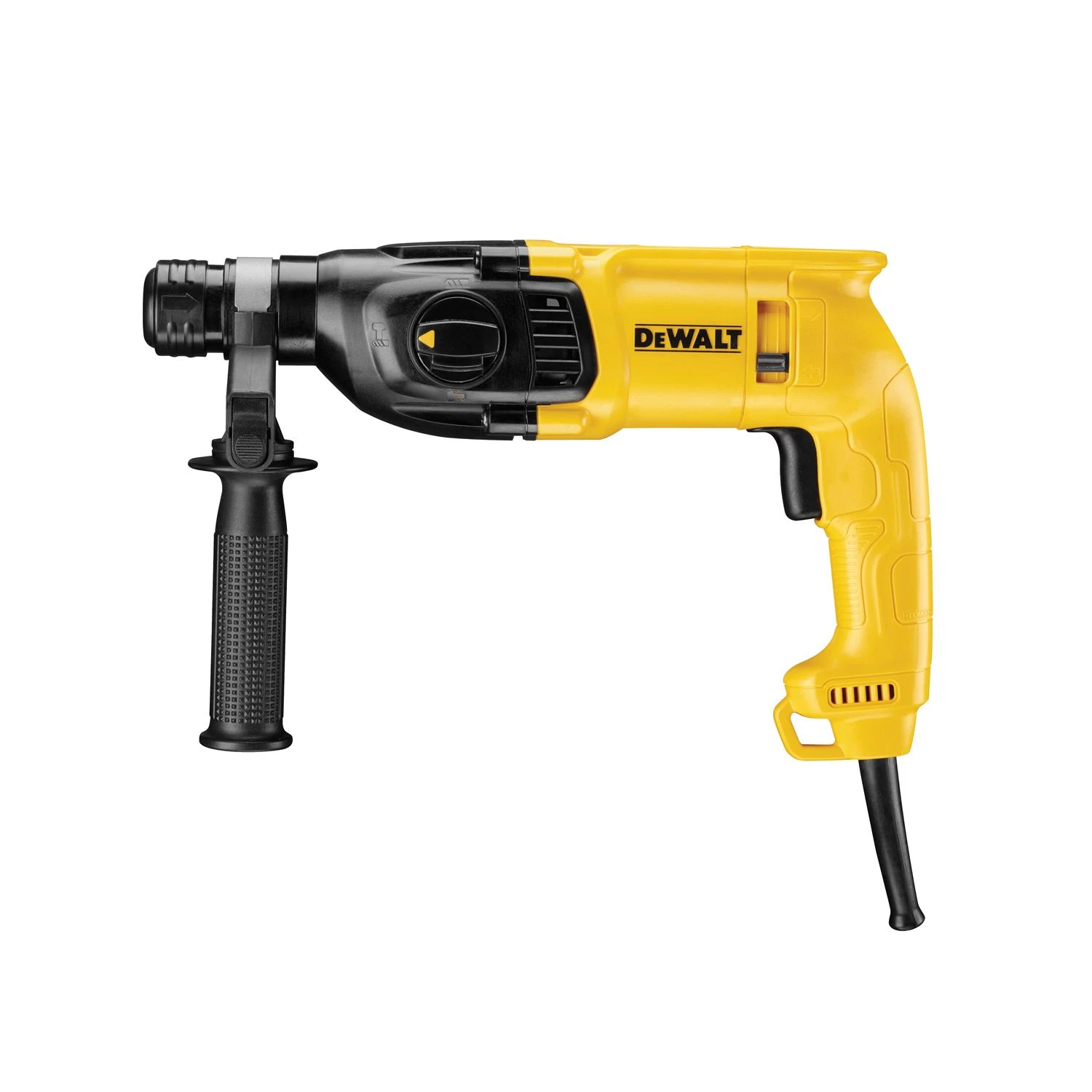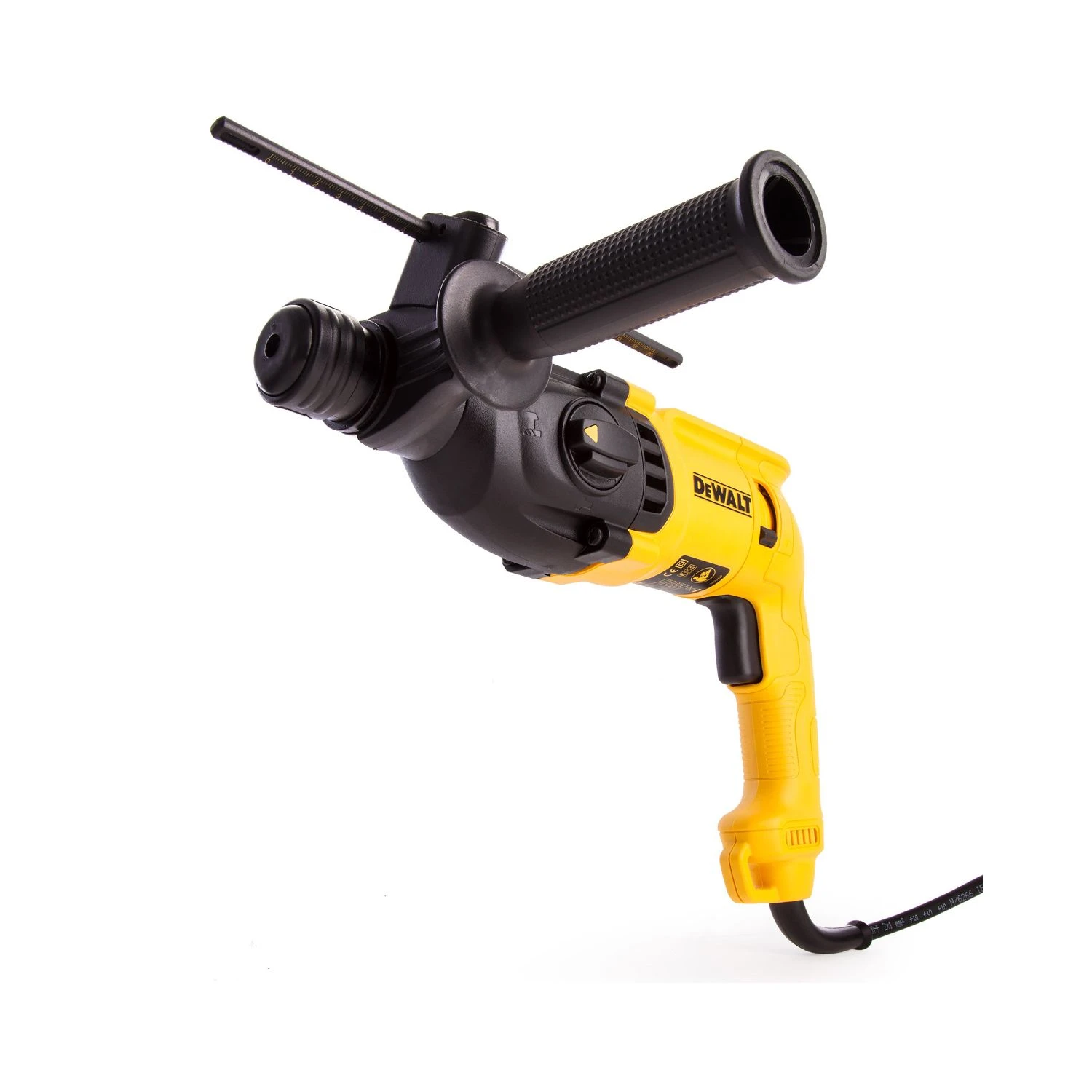 The Dewalt D25033K 3 mode SDS Plus hammer is ideal for drilling anchor and fixing holes into concrete and masonry from 4 to 22 mm in diameter. This model is compact and lightweight yet extremely powerful thanks to the large hammer mechanism which delivers high performance with low stress. This model features a rotation-stop for light chiselling applications in brick, soft masonry and occasionally concrete and impact-stop for drilling in wood, steel, ceramic and screw driving applications. Electronic variable speed ensures total control in any application and the output air slots help protect the user’s eye for increased safety upon use.