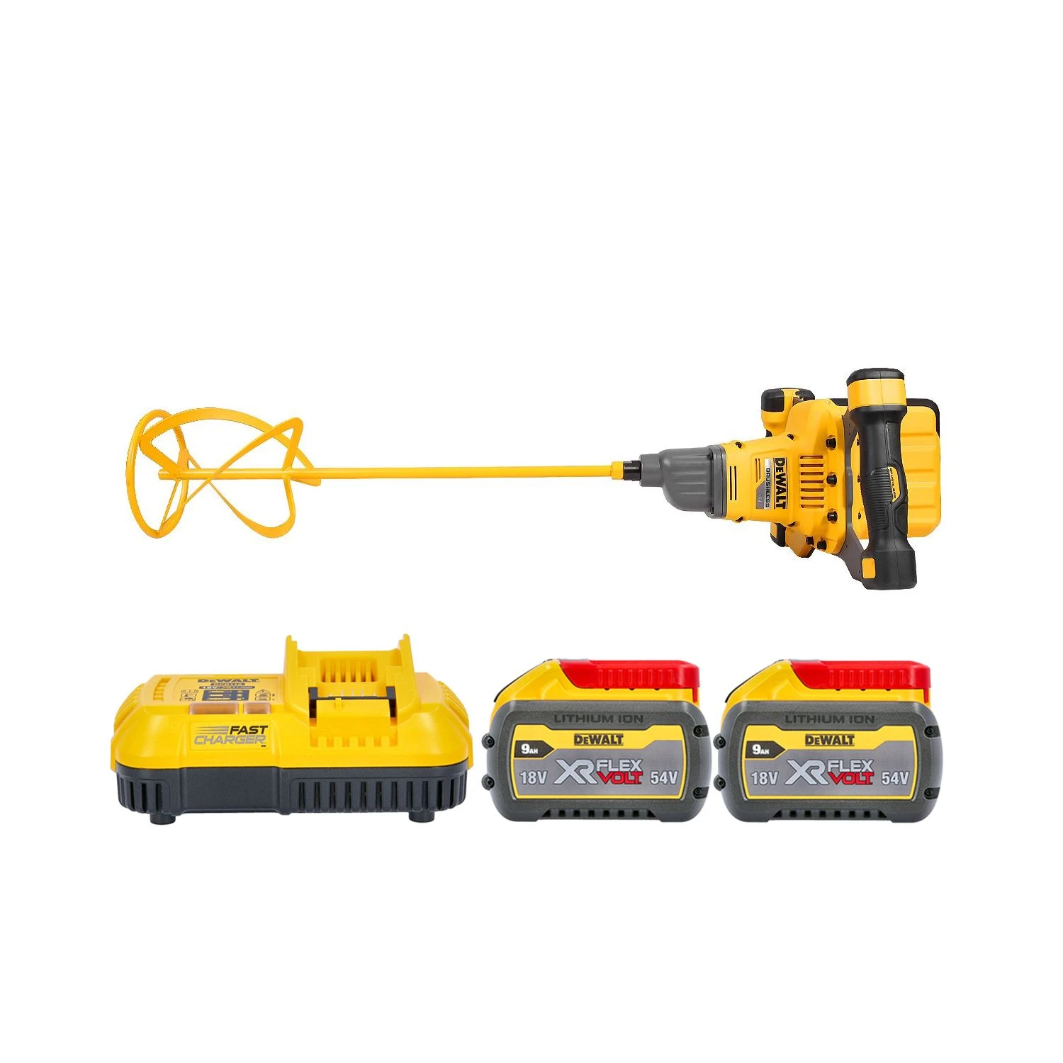 This DeWalt DCD240 FlexVolt Paddle Mixer is cordless with the same amount of power as a typical corded paddle mixer. DeWalt’s incredible Brushless Motor is extremely reliable, powerful and great on run time. The dials gives the users ability to switch between 5 speed settings and a safety lock to decrease the chance of an accidental start. Using an innovating handle designs, the width and angle dimensions are precise to help reduce fatigue when in use.