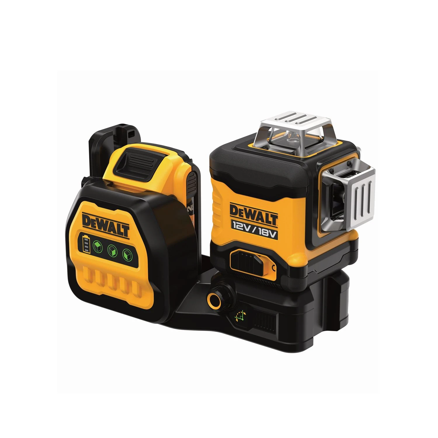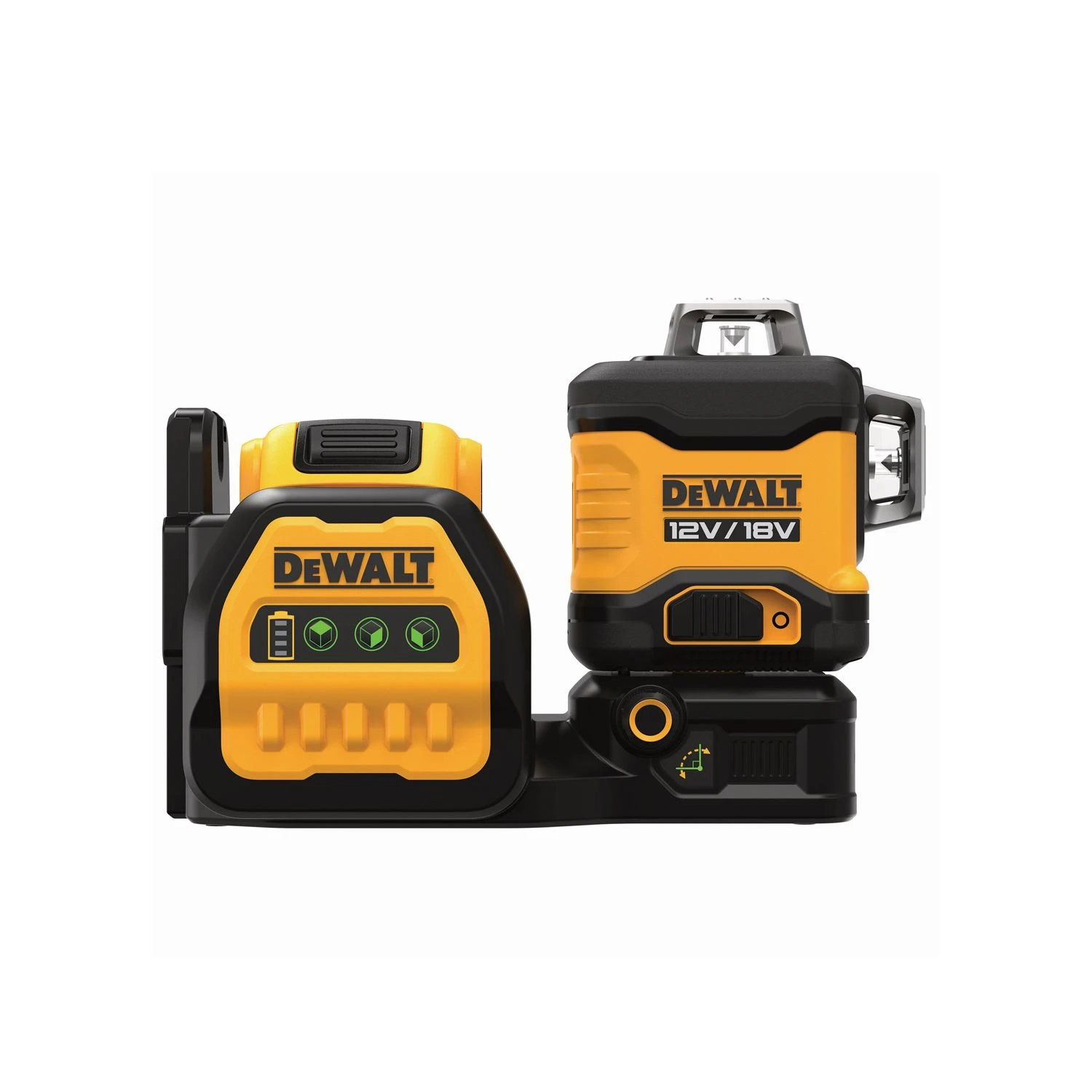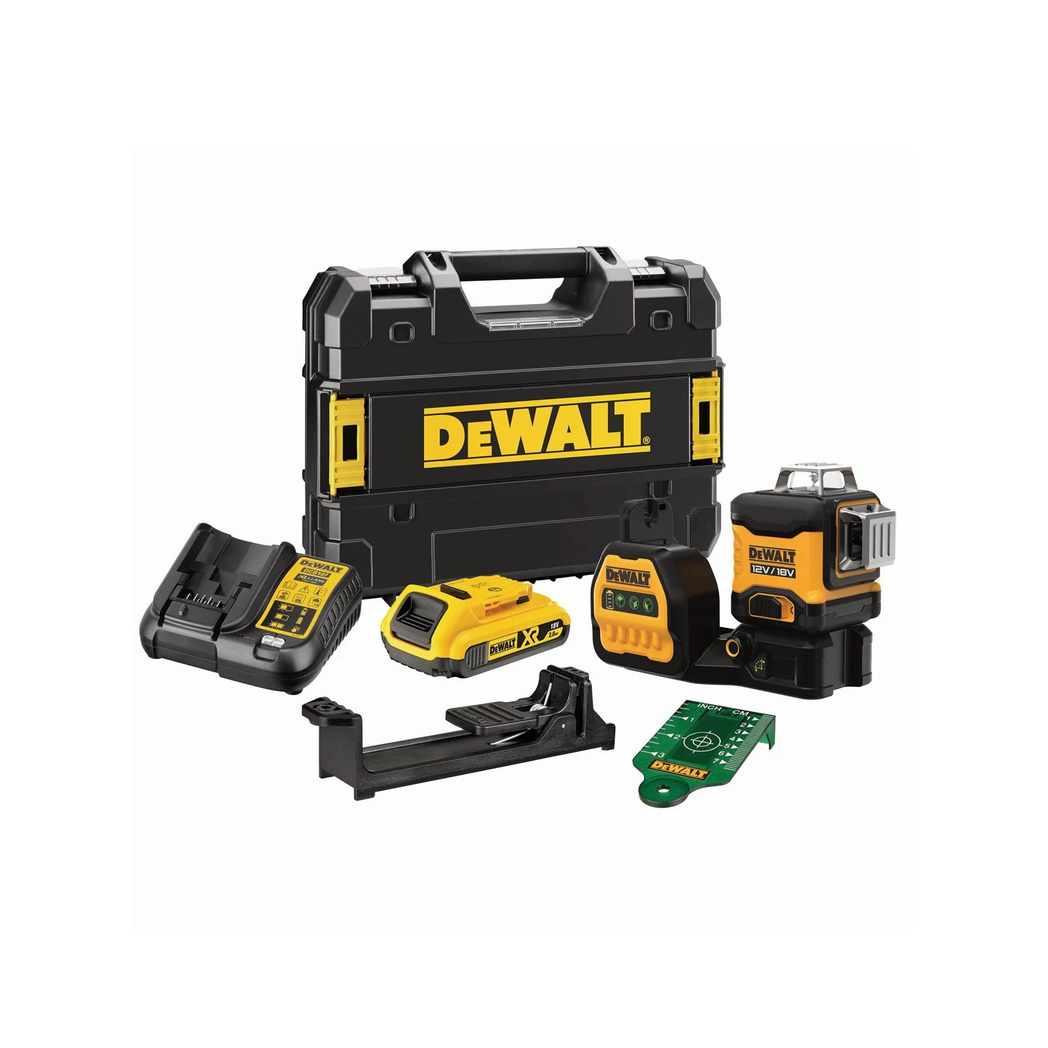 The DeWalt DCE089D1G18-GB 18V/12V 3×360° Green Beam Multi-Line Laser will benefit industry professionals in construction where accuracy is essential. This product is self-levelling and accurate to 3mm over 10m with a green beam that is up to 4x brighter than red lasers. This means that the DCE089D1G18-GB offers users enhanced visibility when in use, especially indoors. In fact, the beams are visible up to 85m when inside. The DCE089D1G18-GB is also user friendly, versatile and durable. A patented fine adjust will allow users to quickly and accurately adjust the vertical beams and DeWalt have made this their first Cross Line Laser that is compatible with all 18V and 12V XR batteries. When using the included 12V battery you can expect up to 10 hours of constant runtime. DeWalt have also ensured that this laser is durable and can withstand worksite condition by fitting it with a IP54 rated rubber over-mould.