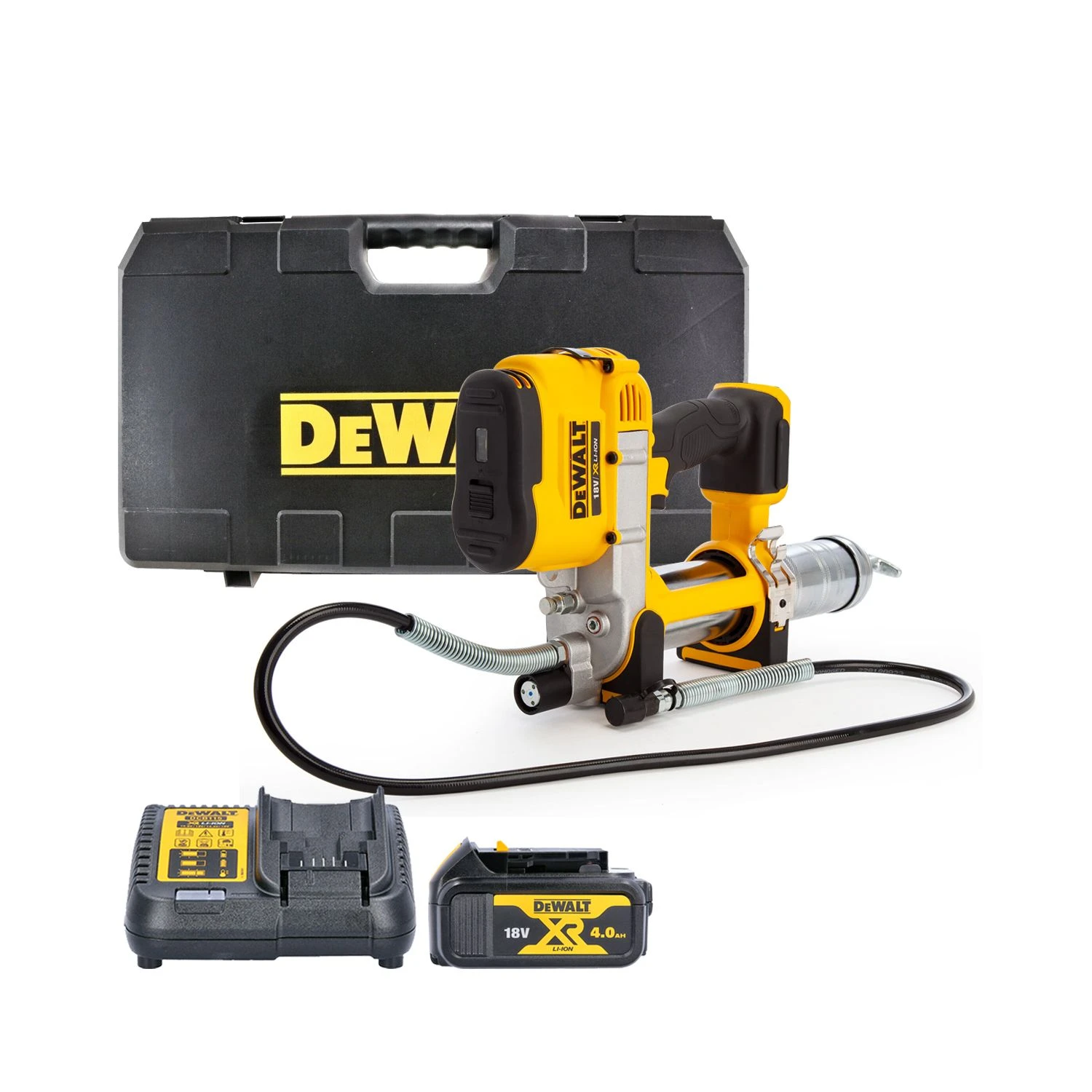 This DeWalt DCGG571M1 Grease Gun allows you to perform daily maintenance grease applications in up to half the time of a manual grease gun. It’s powerful motor has a 690 bar (10,000 PSI) output pressure with a flow rate of 147g per minute. The 1 meter hose means you can get to even the hardest to reach areas, and the built in LED light means you always have visibility over your work. Plus, there’s a shoulder strap including – perfect for carrying the grease gun around the worksite or even up a ladder if required.