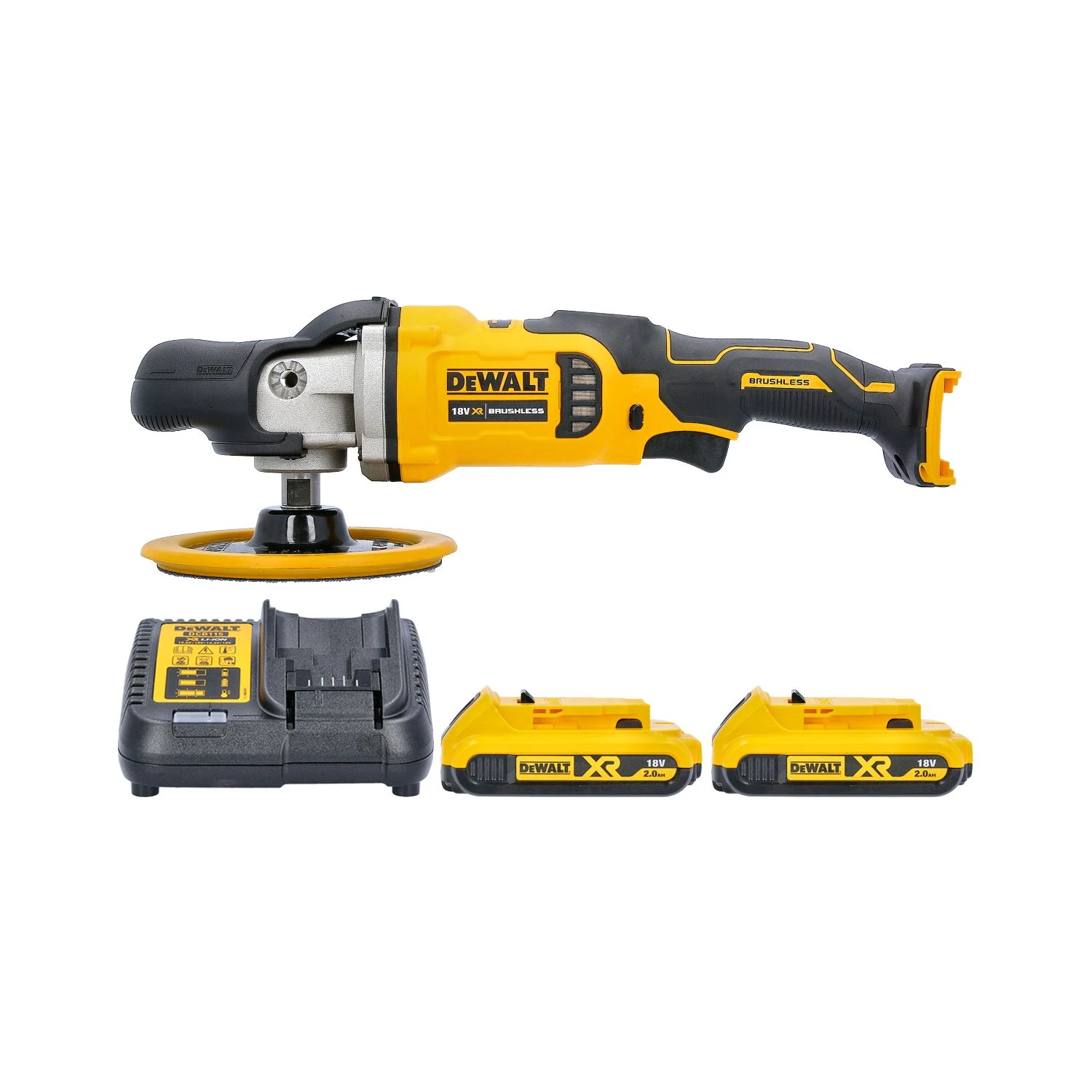 The DeWalt DCM849 rotary 18v cordless polisher for body shops, boat builders, stone masons and solid worktop installers. Used for car body repairs, vehicle valet services, boat repairs/polishing, Ornamental stoneworks – grave stones etc, kitchen fitters/solid worktop installers/manufacturers. Featuring a powerful 18v brushless motor so the unit will not bog down or stall in heavy load applications. The variable speed dial allows for quick and convenient speed changes for preference or application. The ergonomic slim rubberized gripping area allows for comfortable and fatigue free use over extended periods.
