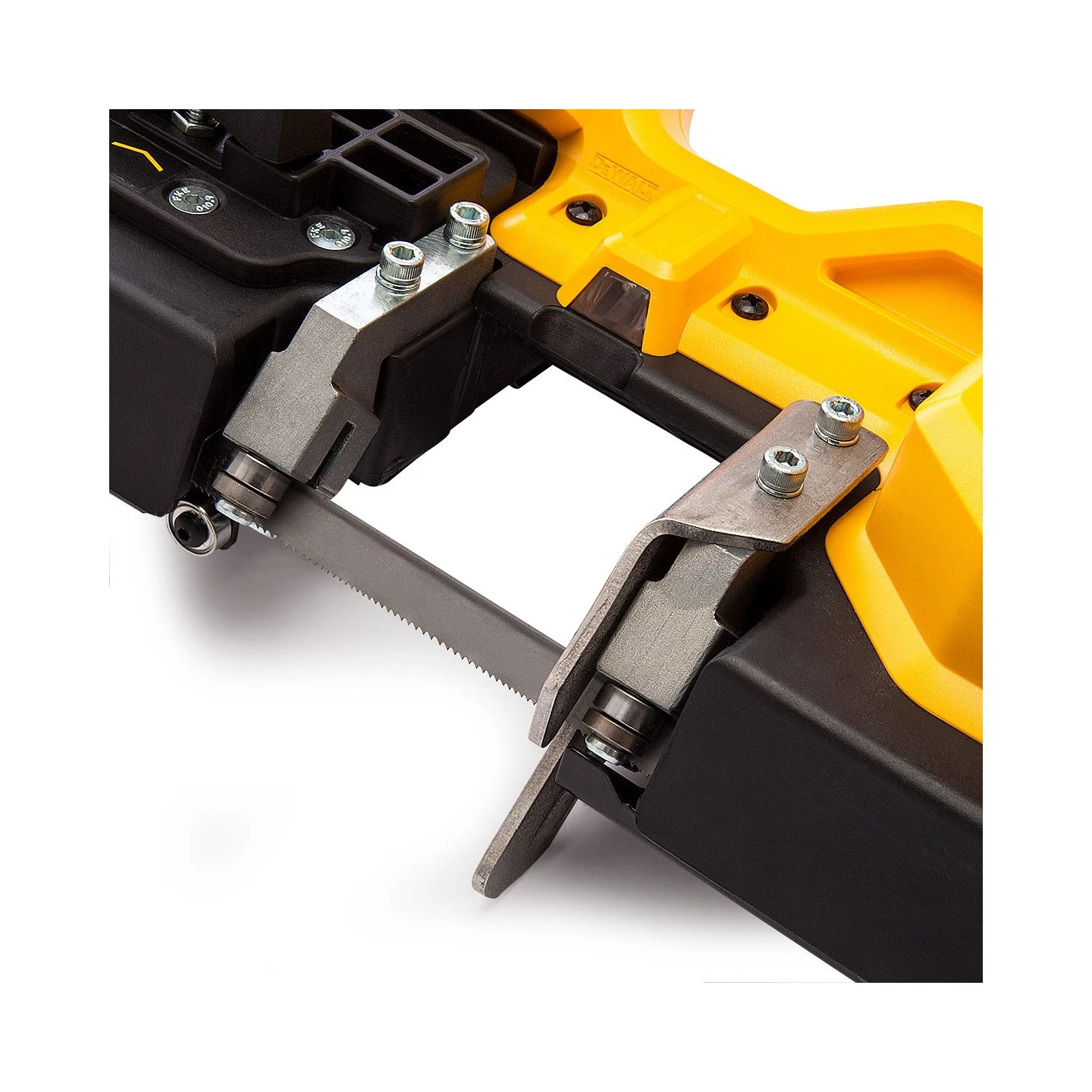 The DEWALT Cordless Compact Bandsaw is ideally suited for cutting lengths of metal, including threaded rod, unistrut and steel pipework. It creates little or no sparks when cutting metal and provides smooth cuts leaving surfaces burr-free. On top of this, the bandsaw is well balanced and easy to handle in all orientations including overhead, making for an ideal tool for professionals. What’s more, it has a large 63mm cut capacity and cuts up to DN 50 or 2in SCH 40 pipe. It is supplied with a 14/18 TPI variable pitch bi-metal blade and a hanging hook.
