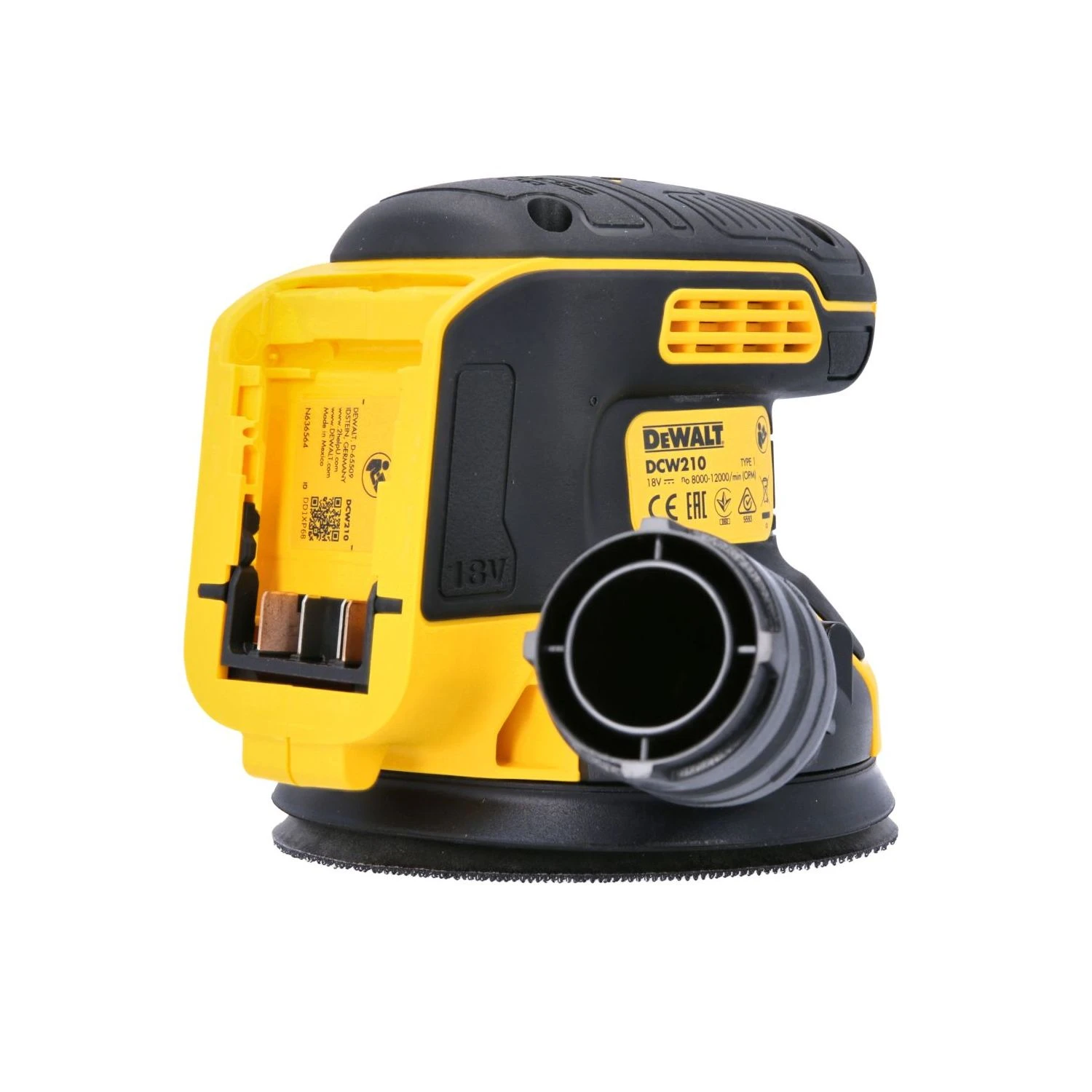The Dewalt DCW210N-XJ is an 18v XR Li-ion Brushless 125mm Random Orbital Sander. Ideal for a wide variety of sanding applications, both stock removal and ultra-smooth finishing. The precision engineered brushless motor delivers thepower to meet the demands of the toughest applications. A variable-speed dial provides ultimate speed control from 8,000 – 12,000 OPM for a variety of projects. One-handed locking dust bag attaches securely to the sander to aid in dust collection or the user can attach the sander directly to a dust extractor. Rubber over-mould grip provides comfortable sanding. Replacement 8-hole hook-and-loop sanding pad for quick, easy paper changing. Supplied with fixed backing pad and dust bag. Body Only / Naked machine, supplied without batteries or charger.