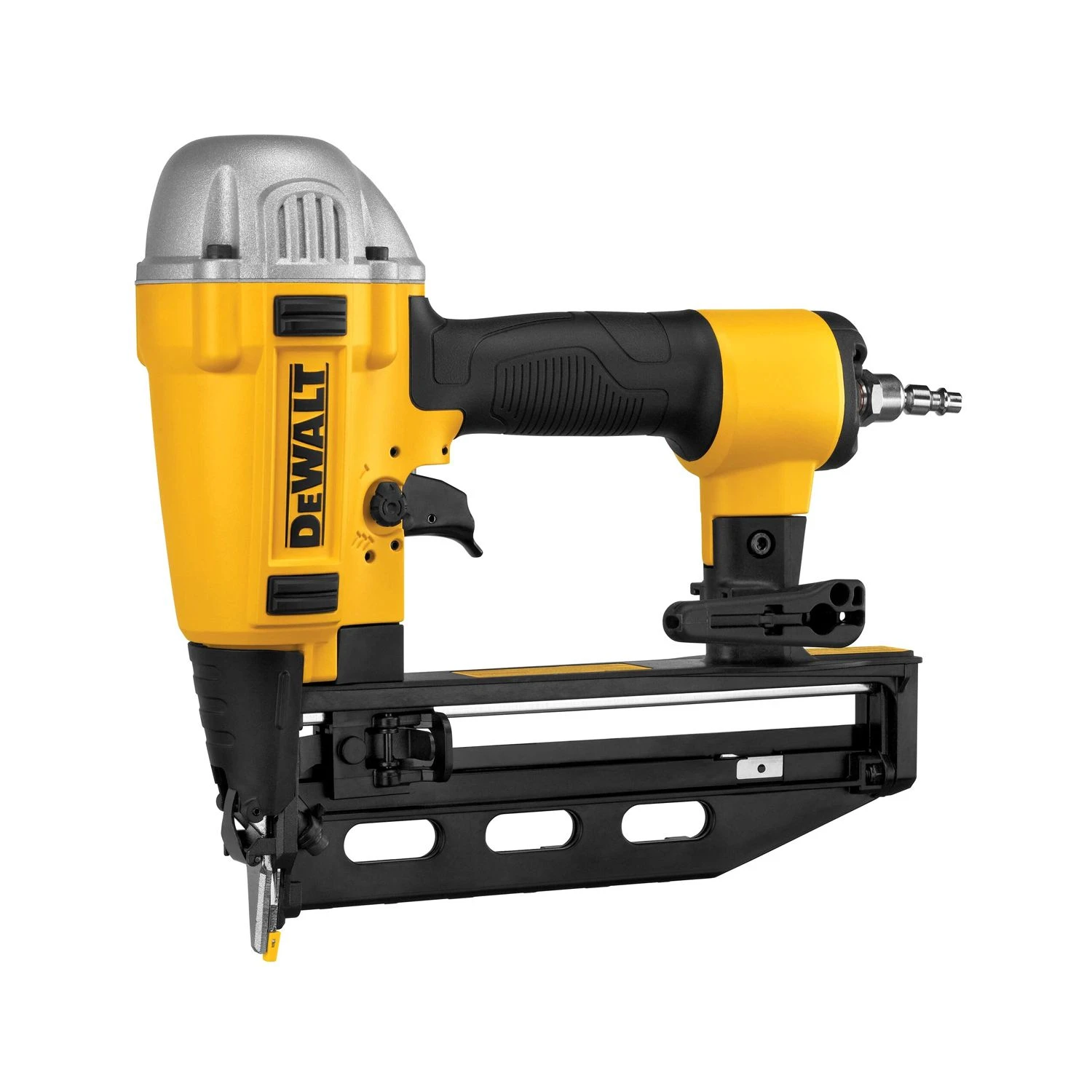 DeWALT’s 16 gauge pneumatic nailer features Precision Point™ Technology which eliminates the need to push against material to actuate the tool and increases visibility for precise nail placement. The DPN1664PP drives straight 16Ga finish nails from 25 to 64mm length. With a tool-free jam release mechanism for easy nail removal and depth-of-drive adjustment for proper setting of nail heads.