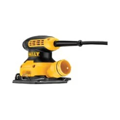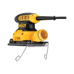 The DWE6411 1/4″ Sheet Palm Sander has a 230 Watt motor that delivers 14,000 OPM. The separate counterweight reduces vibration and along with the rubber over-mould grip provides comfortable sanding. A shorter design allows users to get closer to the work surface and the one-handed locking dust bag attaches securely to the sander to aid in dust collection or the user can attach the sander directly to an AirLock compatible dust collector. The new paper clamp holds sandpaper securely during sanding.