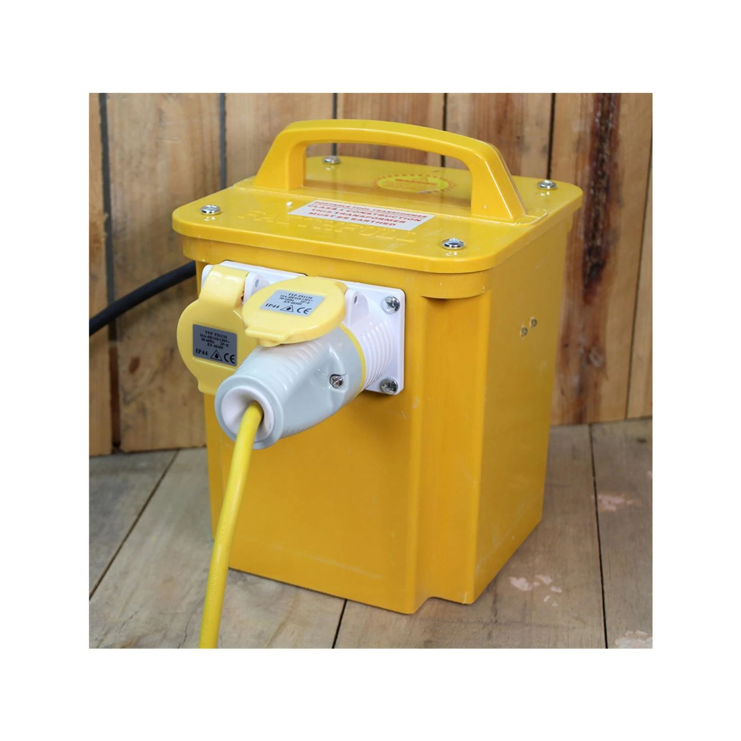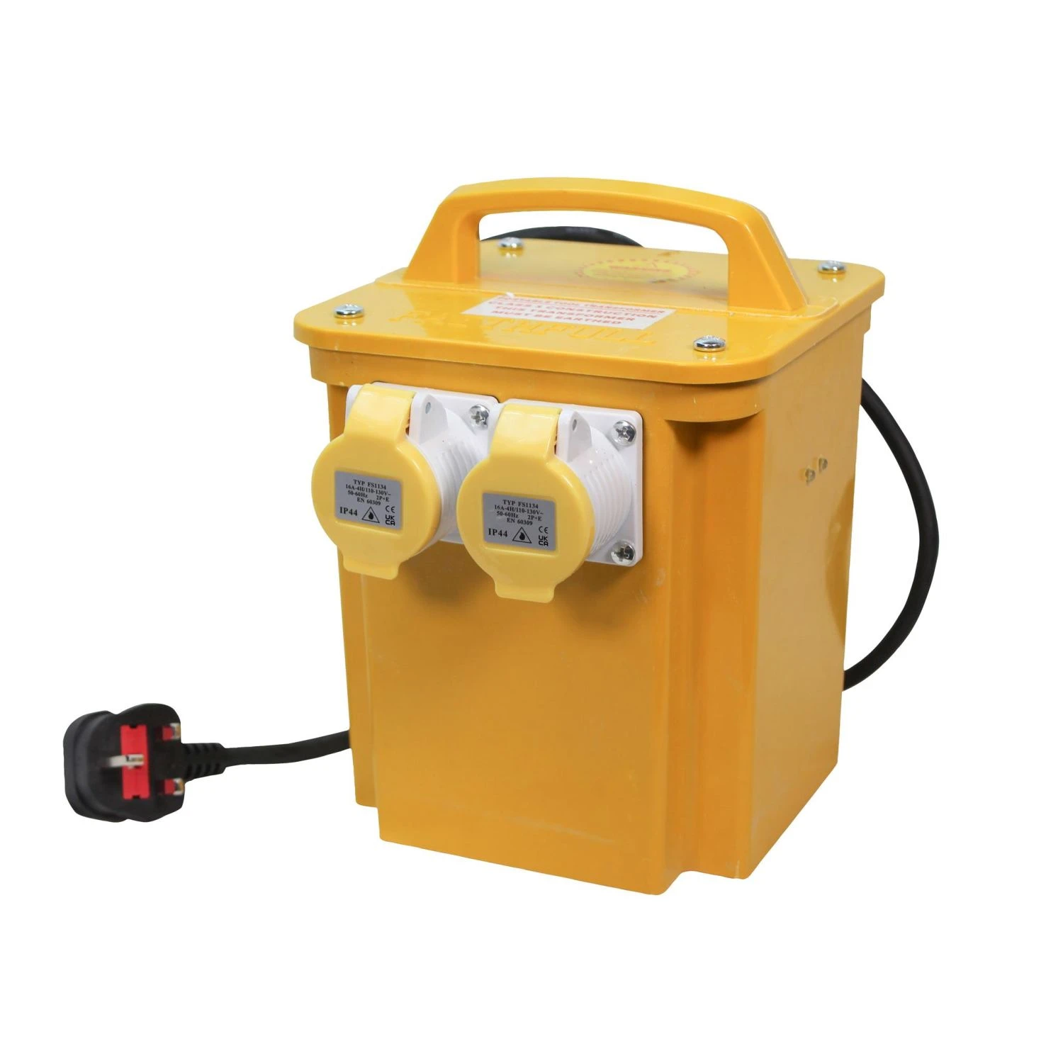- Heavy-duty GPR waterproof case 240 Volt input with 2 x 110 Volt 16amp outlets