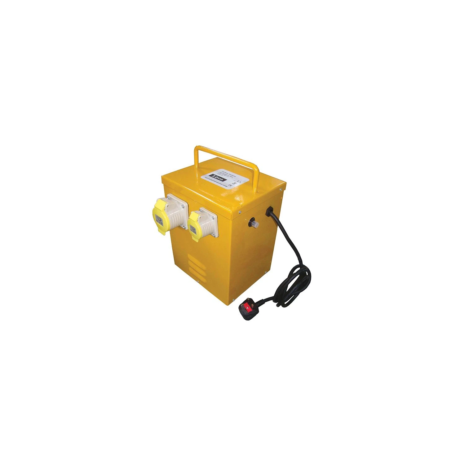 The Faithfull Power Plus TRANHEAT is a 110V vented portable transformer suitable for use with 110V electric heaters or other applications where a continuous load is to be applied. This model has 2 x 110V sockets, one is 16 amp and the other is 32 amp. Safety features include a resettable thermal overload protection function and a heavy-duty rubber cable fitted with BS approved 13 amp rubber plug. The vented steel case conforms to IP20 for water and dust ingress protection.