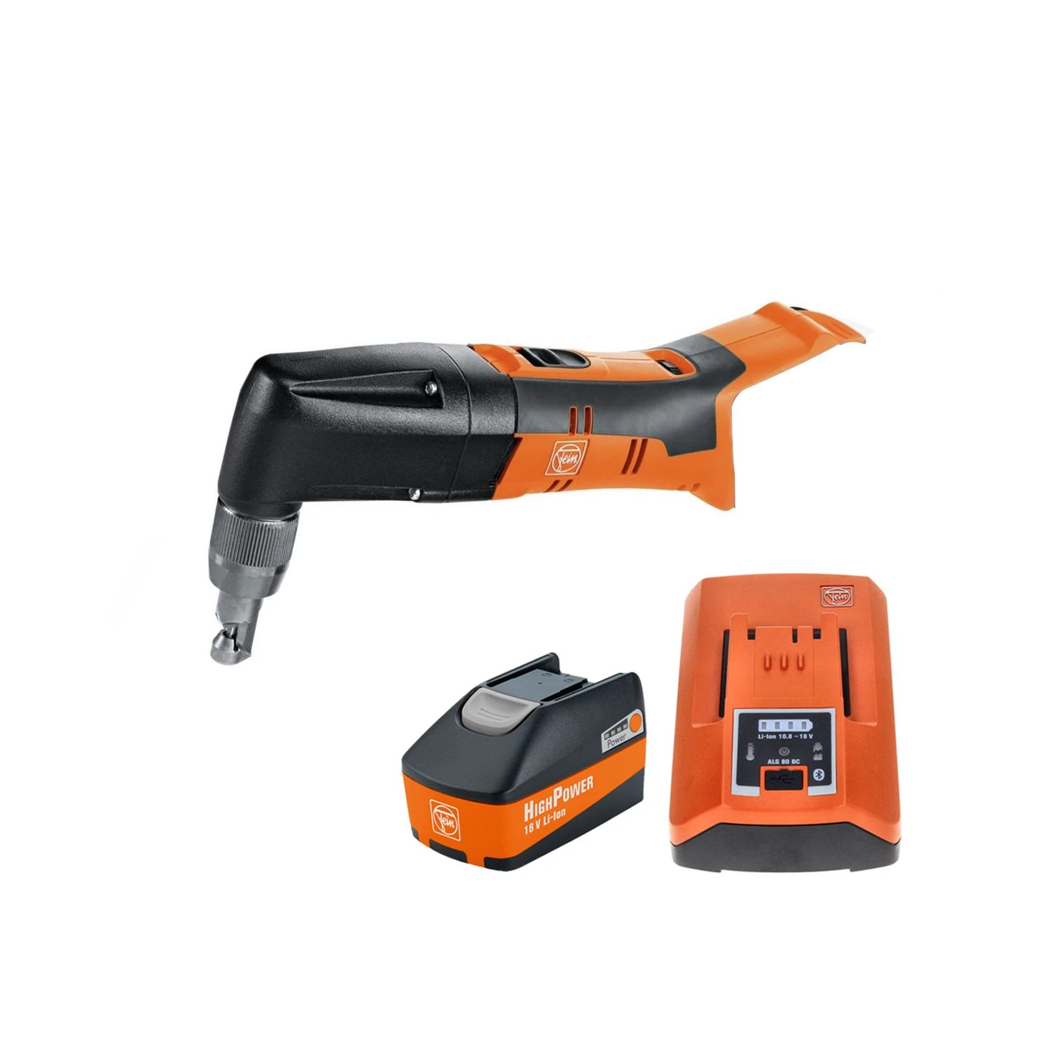 The Fein 71320661000 Cordless Nibbler SELECT has a cutting capacity of 45m in 0.8mm sheet metal on just a single 6Ah battery charge. With a cutting speed of 1.9 m/min, users can make exceptional progress. The speed control is electronic, variable and adjustable. The tool is lightweight and comfortable, with a QuickIN quick change system for die and punch. The gearbox is slim which allows for optimum and easy handling. The cutting direction setting can be changed in 45° steps up to 360° using tool-free pivoting cutting head.