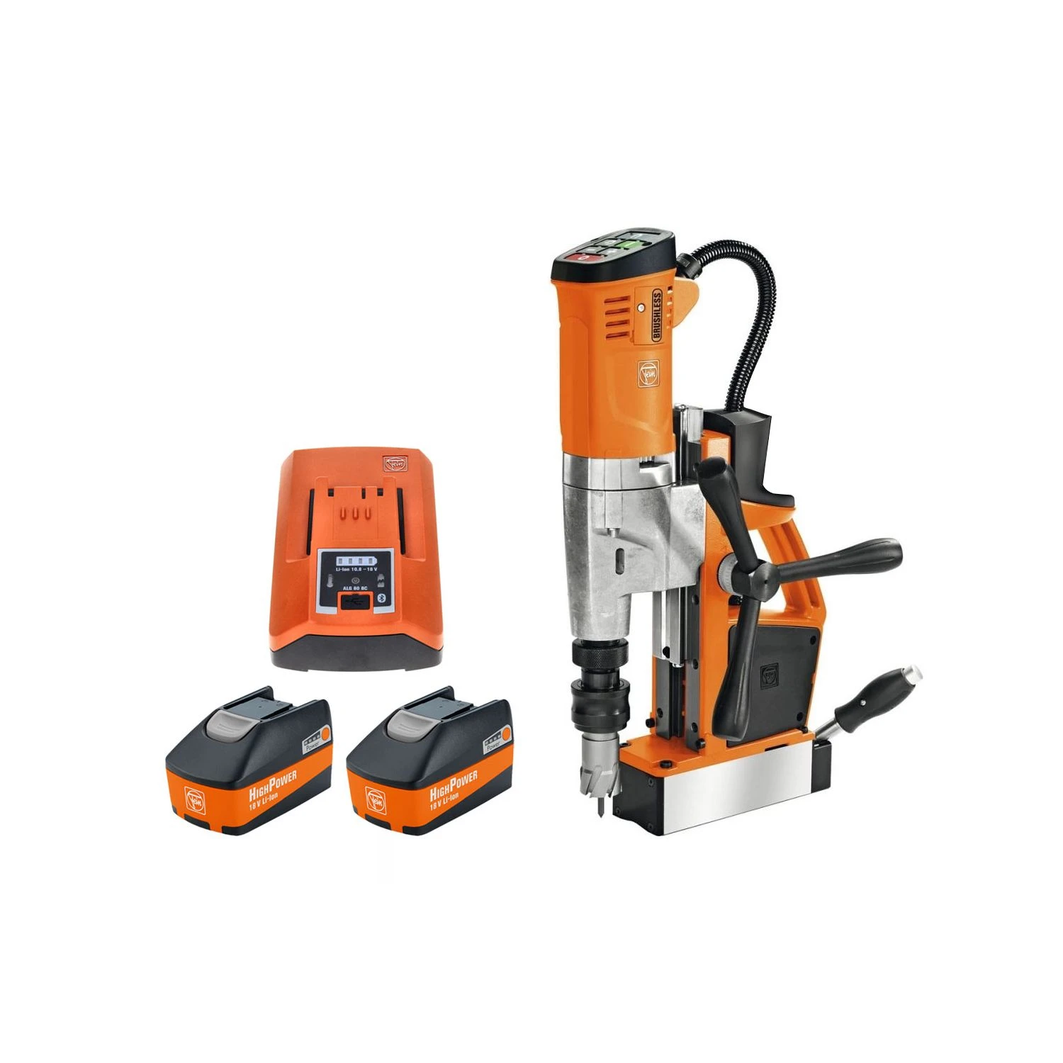 The Fein AKBU 35 PMQW SELECT 35mm 18v Cordless Mag Drill is a low-wear tool ideal for industrial use. Combining a light construction with impressive power, the drill offers exceptional progress and reliability thanks to its FEIn Powerdrive motor. The drill is excellent for a variety of applications including reaming, countersinking, twist drilling, tapping, and core drilling. The FEIN HighPower battery has a continuous power output that is 75% higher than a conventional Li-ion battery. Ideal for professional industry users.