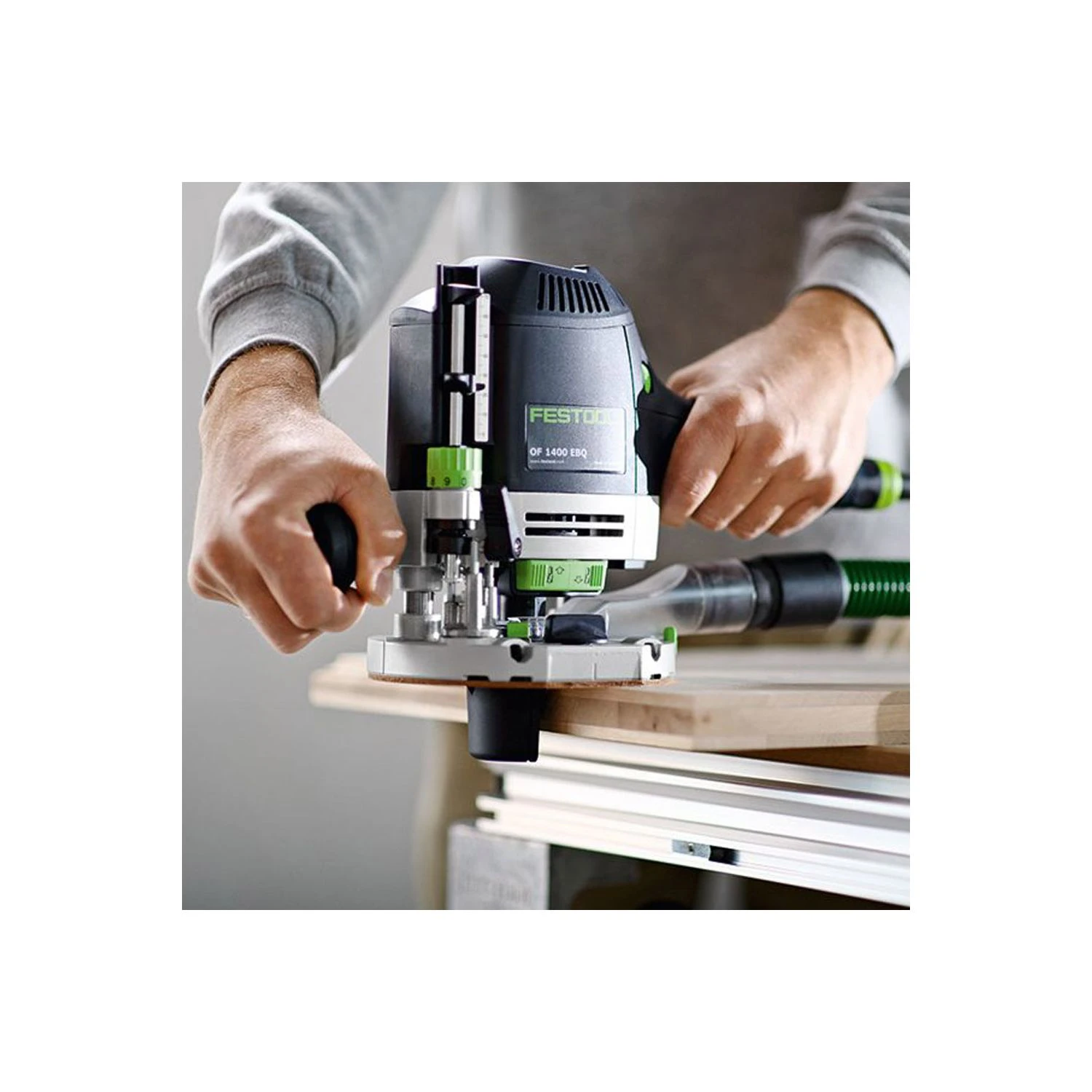 - Up to 99 % dust extraction when routing with chip deflector and dust extraction hood