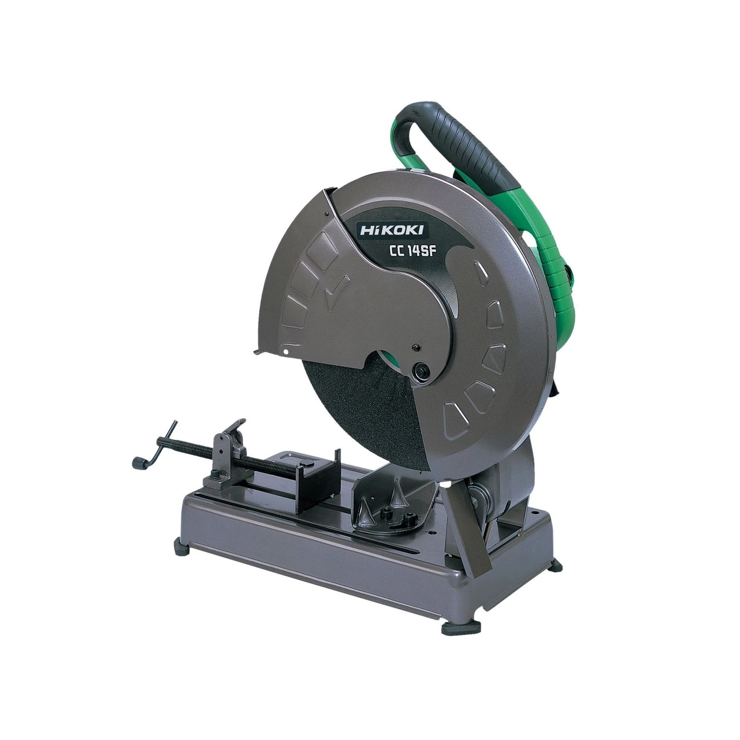 The HiKOKI CC14SF Cut Off Saw has a powerful motor for heavy-duty applications with a sturdy aluminium housing for extended service life. It has externally accessible carbon brushes for easy service and maintenance. One touch vice system allows quick feeding and easy tightening and cutting. The saw is also fitted with a spindle lock, it makes mounting and dismounting wheels more convenient. The soft grip handle provides added user comfort and there is a spark diversion guard for user safety.