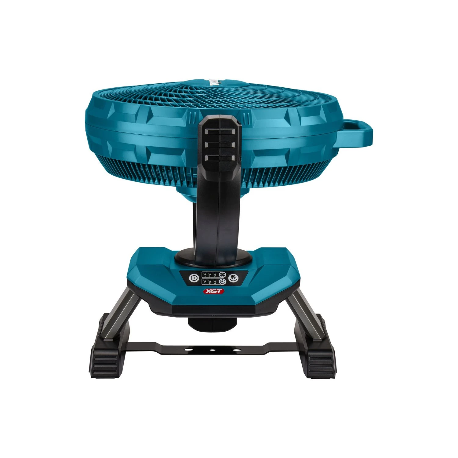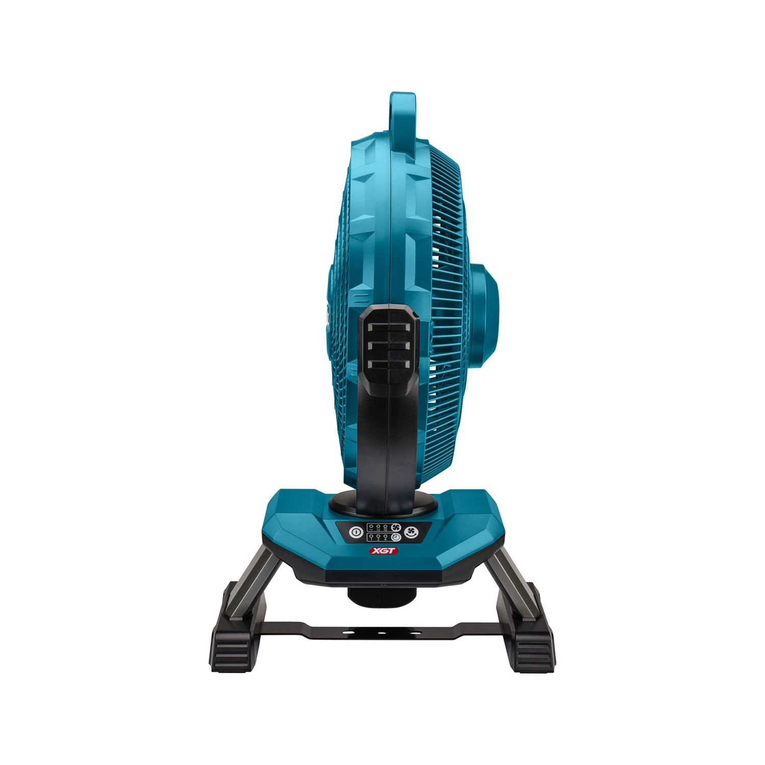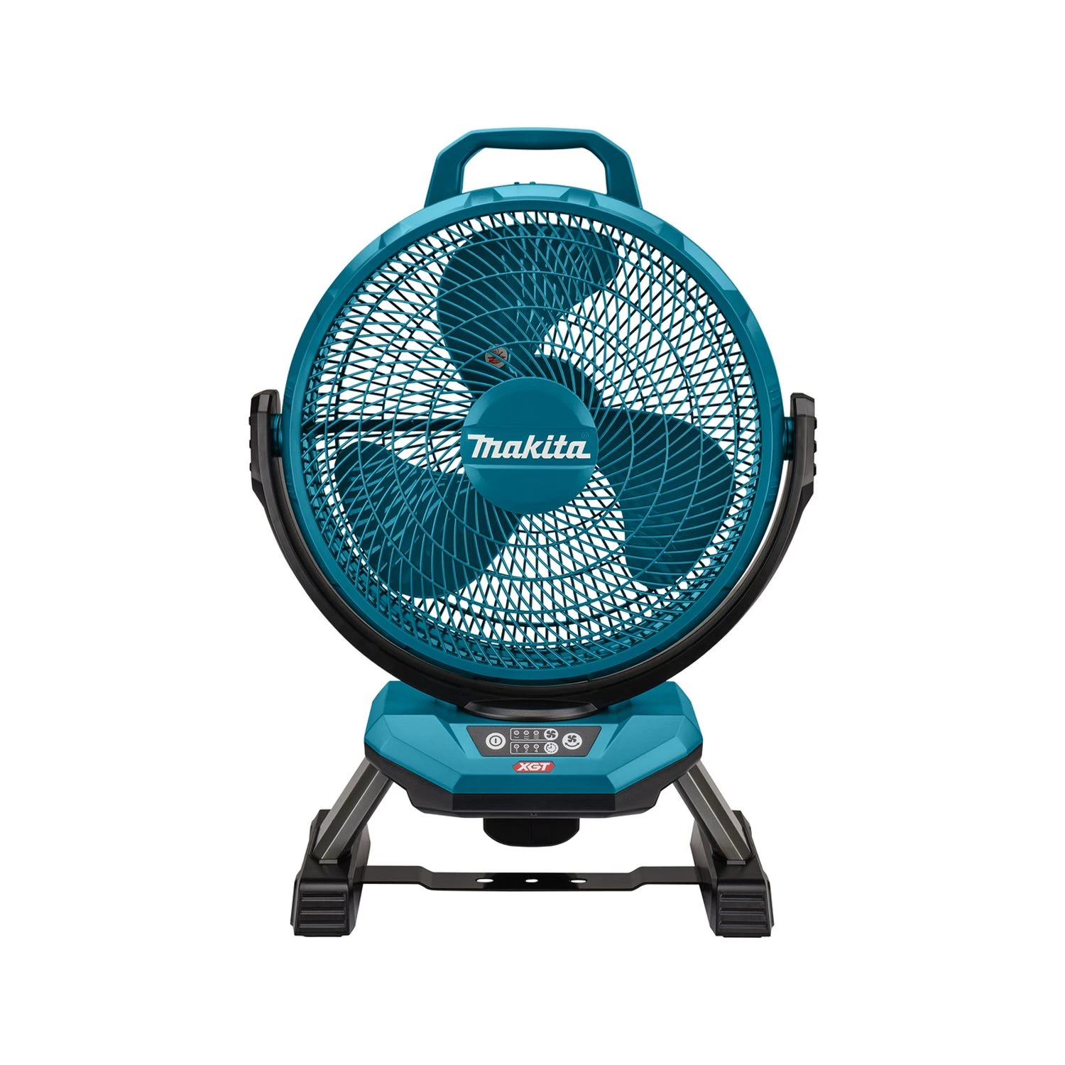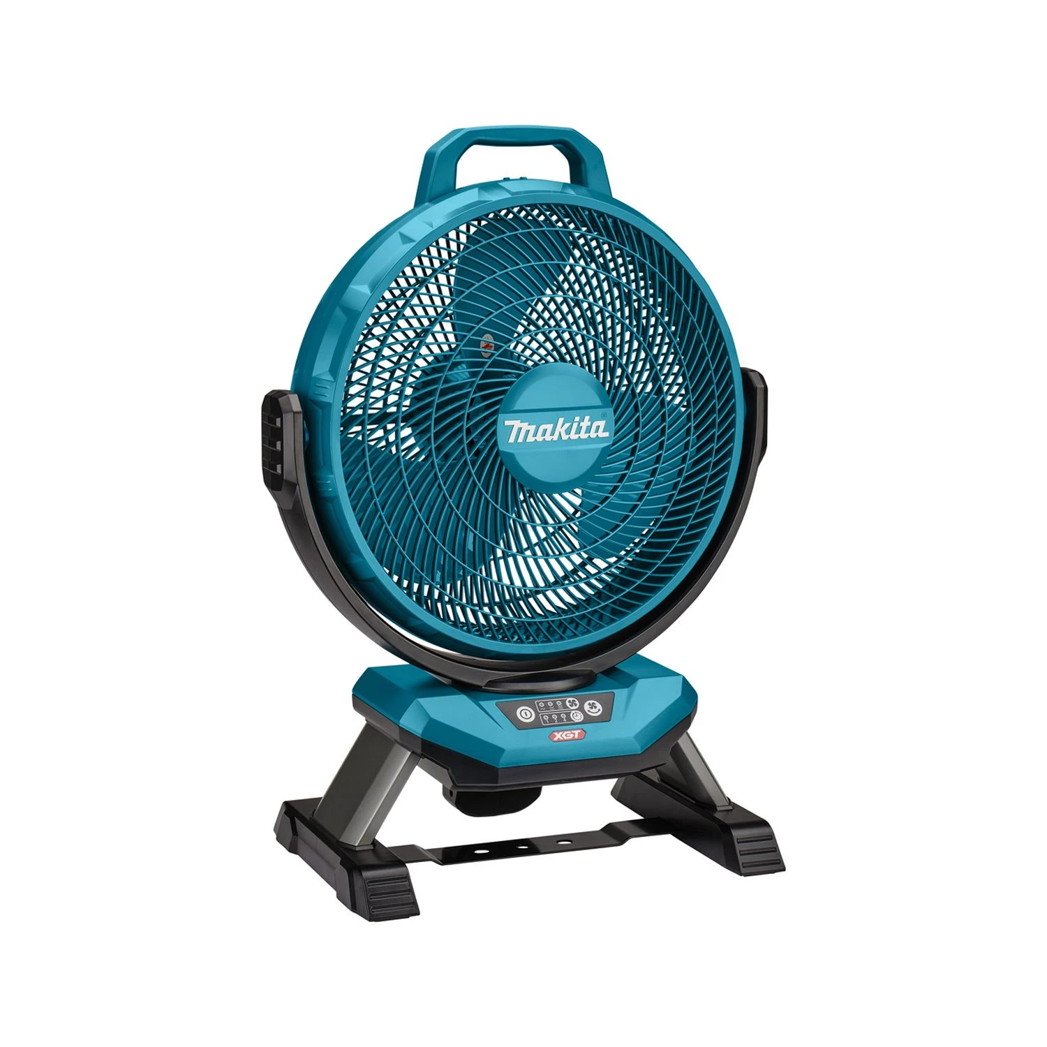 The Makita CF002GZ 40Vmax Portable Fan XGT Bare Unit offers users up to three selectable wind speeds (high, medium, or low). The fan is powered by a 14.4V or 18V LXT Li-ion battery, and includes a front cover that is entirely removable for easy cleaning. It features an off timer switch, and automatic oscillation and up and down tilting. The integrated carry handle makes transportation easy and quick with minimal fuss.