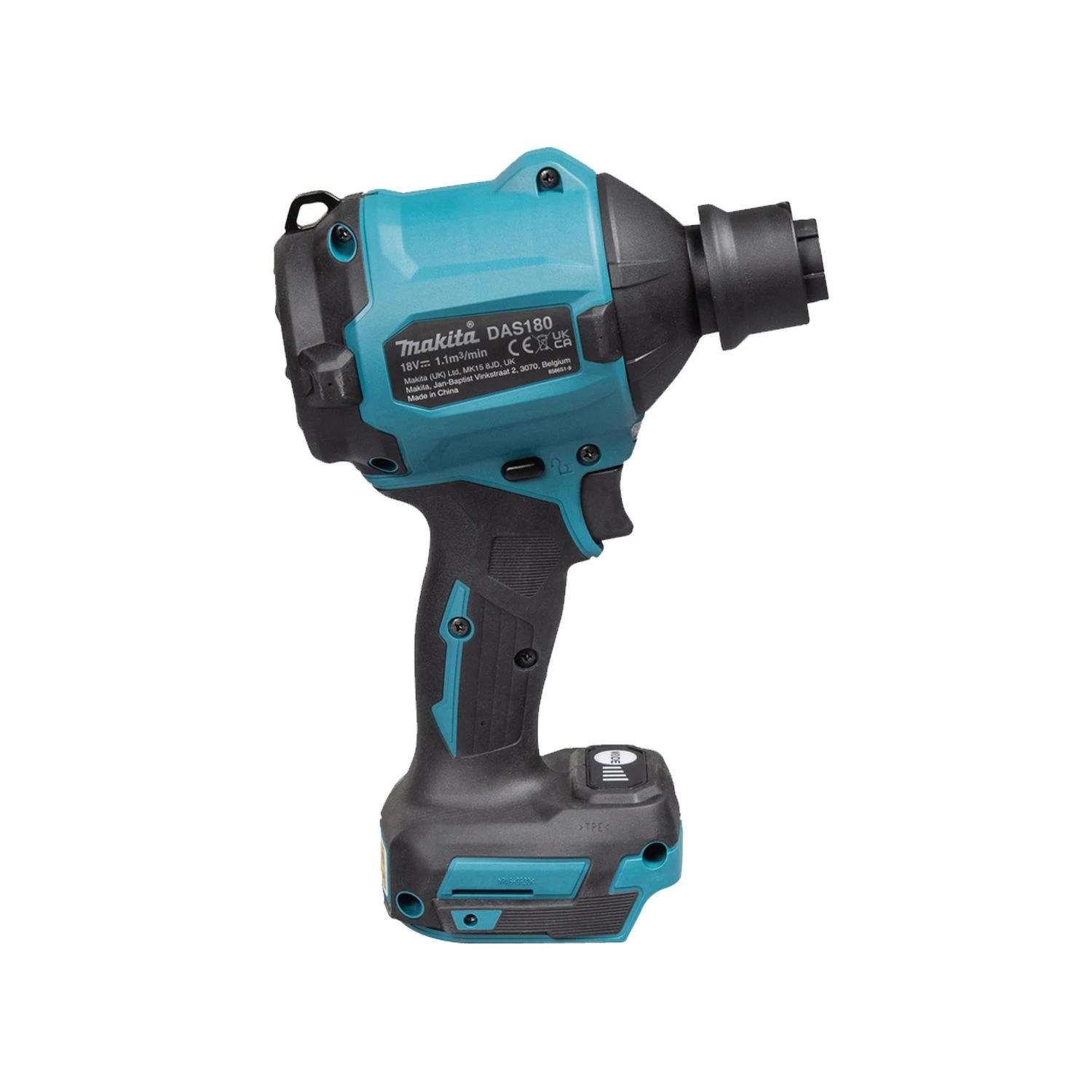 The Makita 18V LXT Brushless Dust Blower DAS180 provides a high powered blowing force. With one touch quick change nozzle replacement the nozzles can quickly and easily be changed to suit the application. Ideal for a a wide range of applications: Inflation and deflation of inner tubes, play pool and more, blowing dust away from OA equipment or narrow spaces, product maintenance (cleaning tools), cleaning air filters of air conditioners etc.