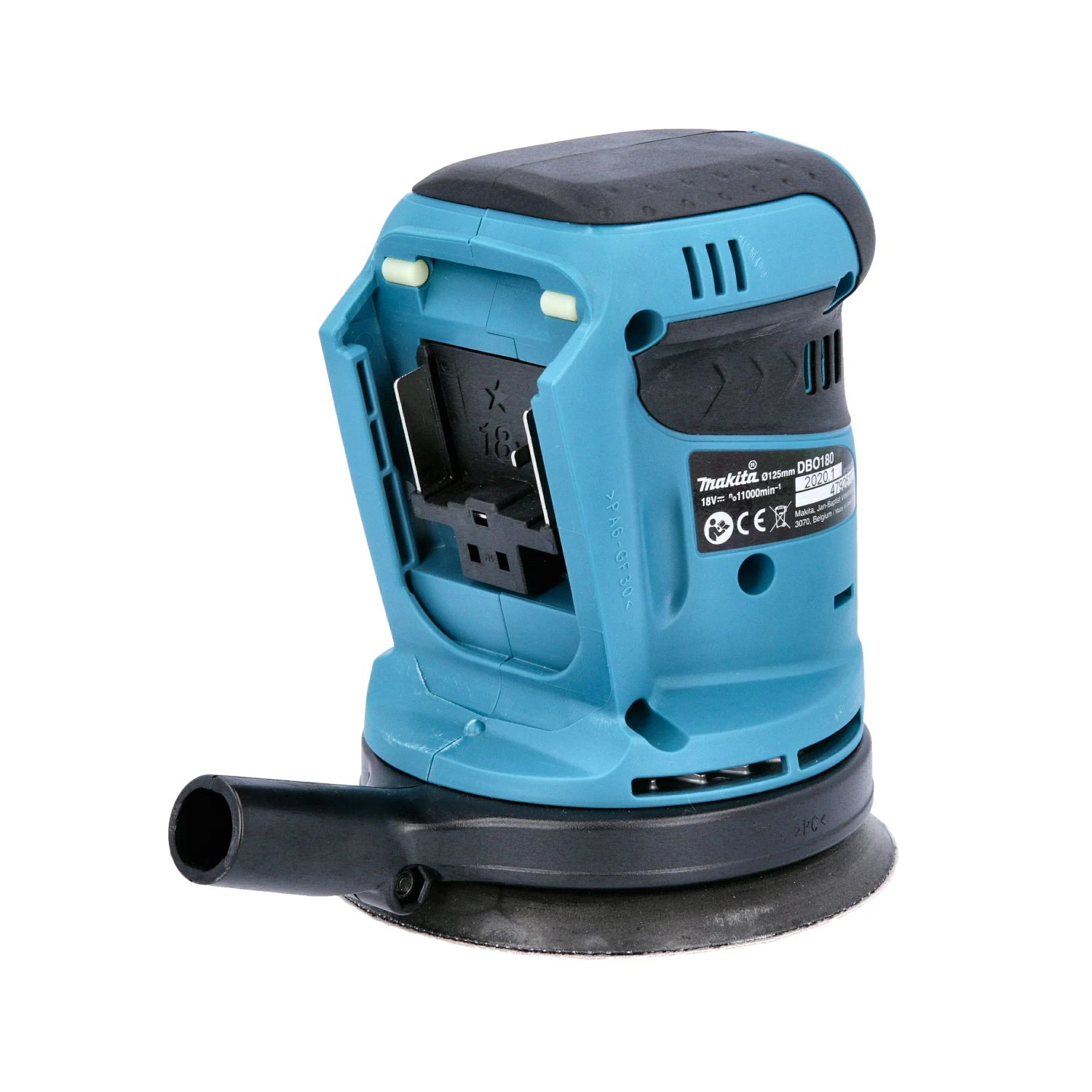 The Makita DBO180Z has been developed as Makita’s first cordless random orbit sander powered by 18V Li-ion batteries. Features compact design with short height and lower center of gravity for better maneuverability. Ergonomically best possible grip design for comfortable handling. Excellent performance as powerful AC model gives high productivity.