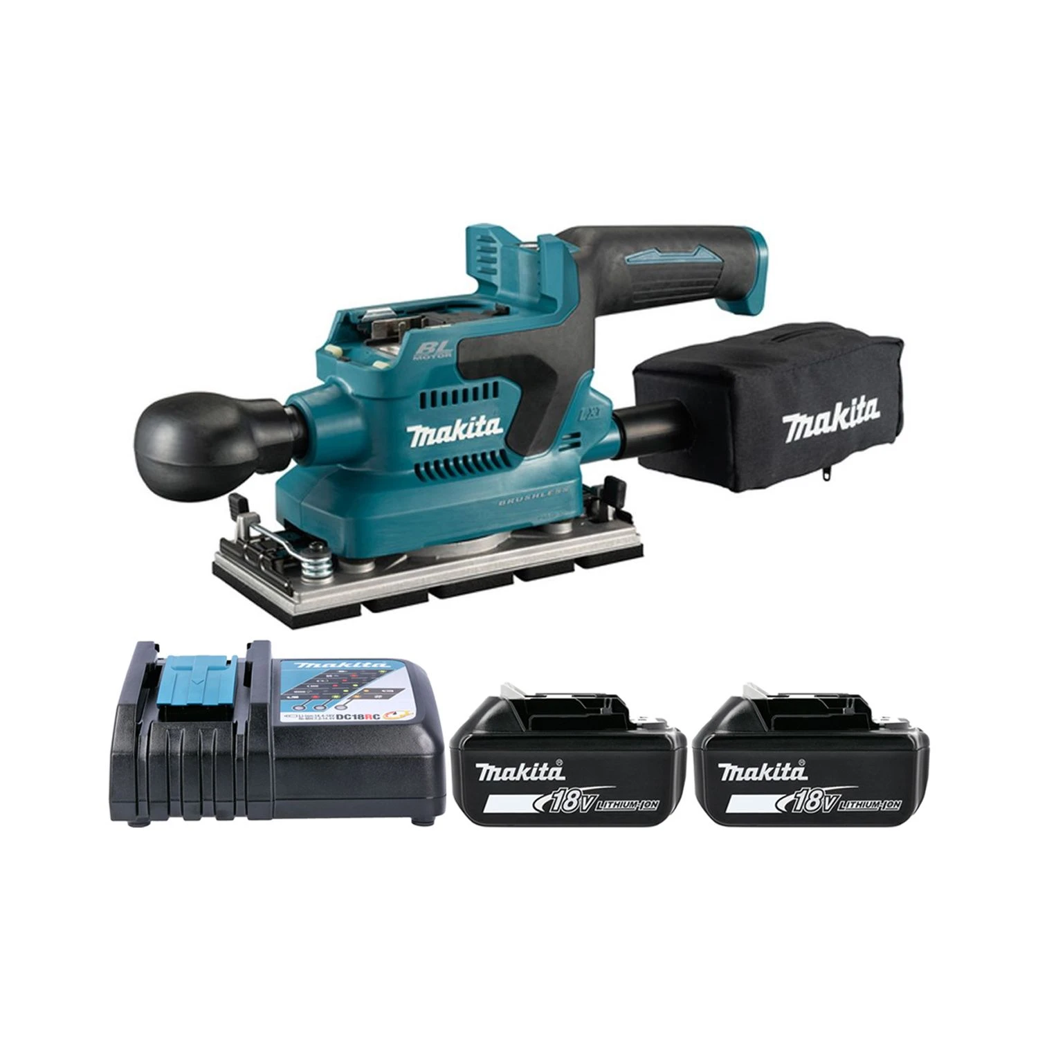 Makita DBO381 18V LXT Brushless Finishing Sander With 2 X 5.0Ah Batteries & Charger