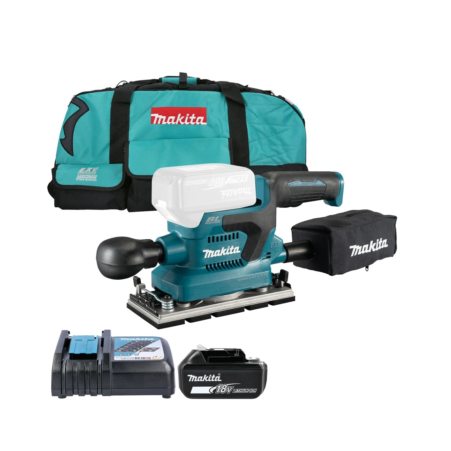 Makita DBO382 18V LXT Cordless Brushless Finishing Sander With 1 X 5.0Ah Battery, Charger & LXT600 Tool Bag