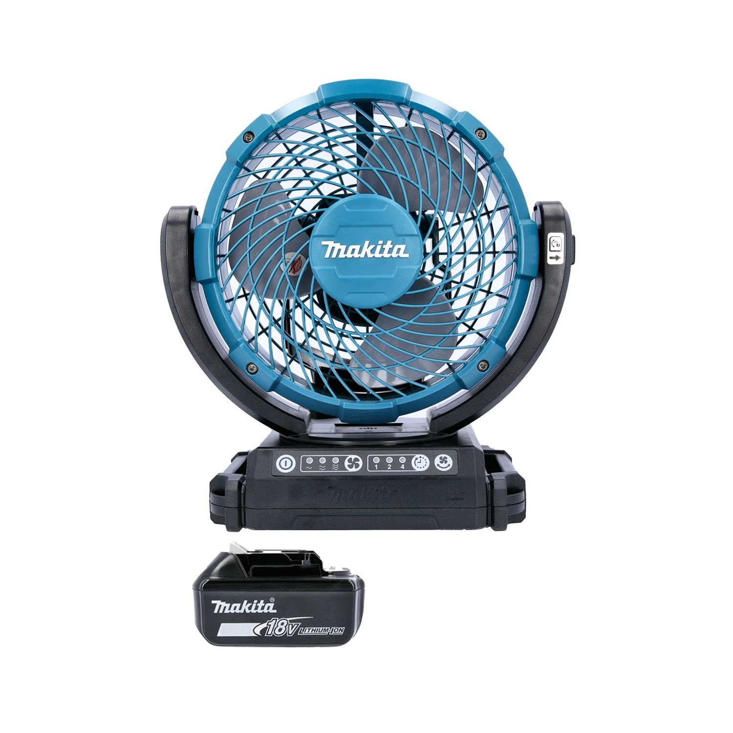Stay cool at the worksite with the Makita DCF102Z CXT portable fan. An ideal addition to your existing Makita tool range. Its compact size means and long battery life makes it an easy choice when working in hot temperatures. Providing 3 different speed settings and off timer so that you do not waste battery if you forget or are working away from the fan for a period of time. The adjustable hanging hook and the fact that the fan head is fully adjustable means you are always going to be able to find the optimum position for it. It can even be mounted onto a tripod.