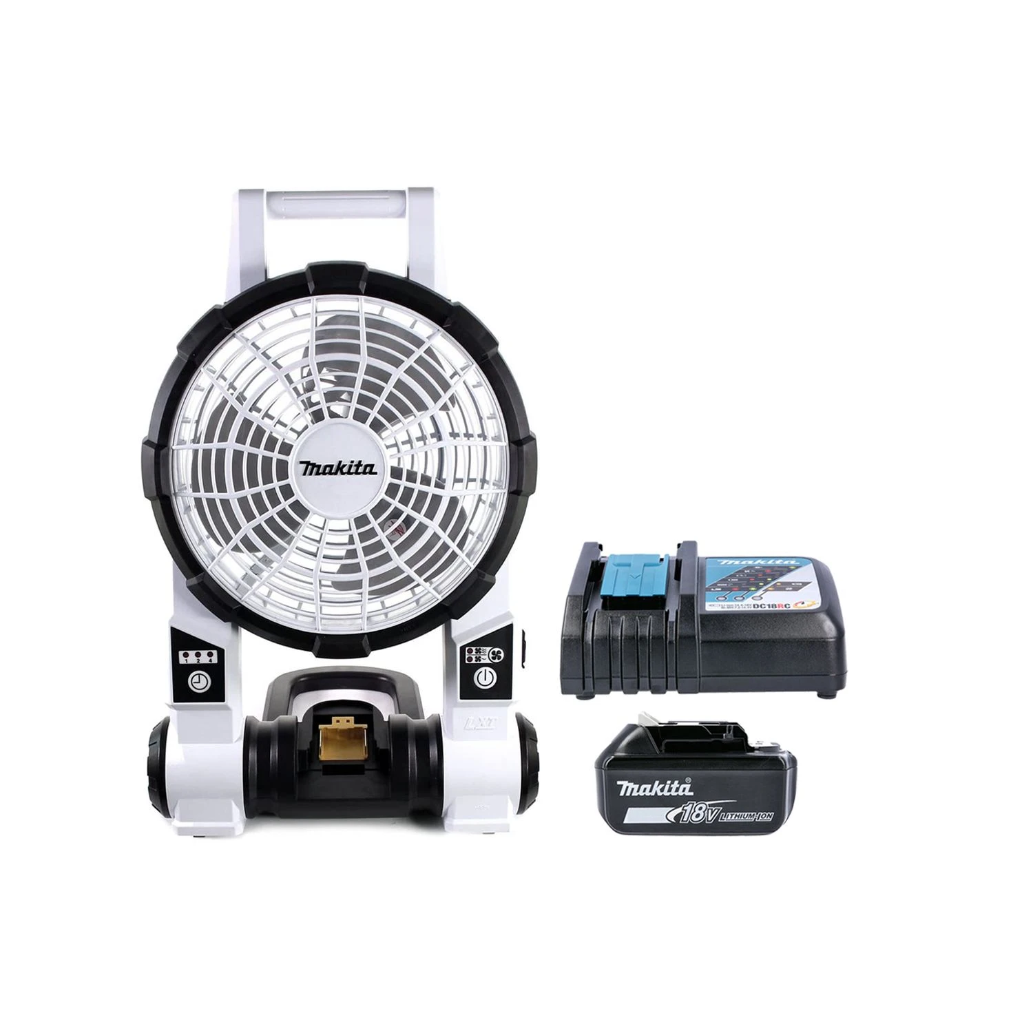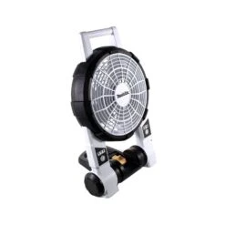 The Makita DCF201ZW 18V LXT Portable Cordless Fan is an ideal fan for all situations, whether you want to use the fan at home or in the workplace. As it is robust is designed to be suitable for job sites to ensure it doesn’t break at the first opportunity. For complete control and comfort in the immediate proximity of where the fan is being used it has two wind speeds, high and low. The elastomer bumpers protect the unit against rough handling and use on a Jobsite. To reduce energy consumption it has an automatic off timer for 1 hour, 2 hours and 4 hours. This fan can be used cordlessly, using Makita Li-ion batteries or plugged into the mains with an AC adapter. To control the area you would like to have the air-cooled it is angle adjustable.