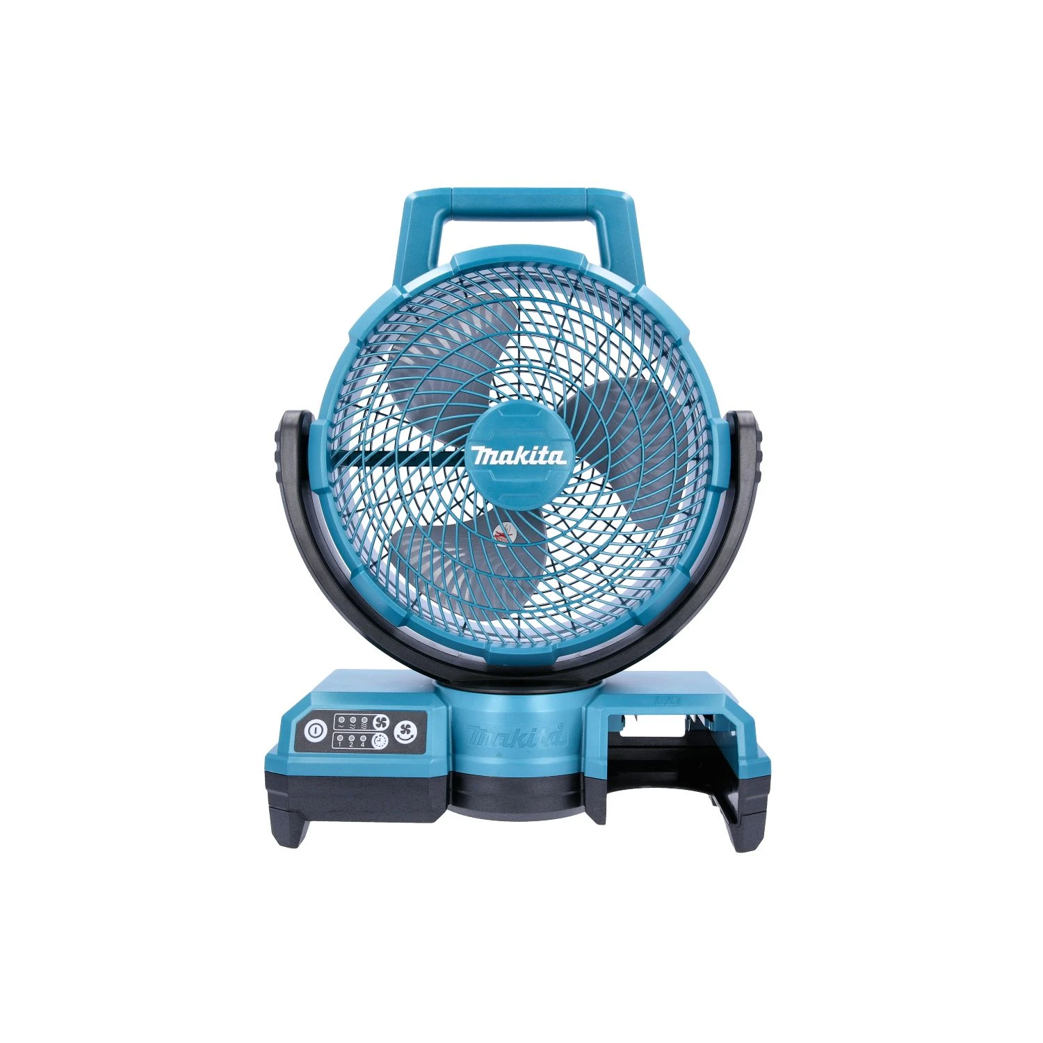 The Makita DCF203Z is a 14.4/18V LXT Portable Fan. The ideal solution to keeping cool on the job site, the Makita cordless 235mm LXT fan is compatible with 14.4V/18V LXT battery packs as well as an AC power adapter. The run time with 18V 6.0Ah battery is; With Oscillation (H/M/L) = 410 / 650 / 1,010 minutes, Without Oscillation (H/M/L) = 430 / 700 / 1,155 minutes. Providing 3 different speed settings and off timer so that you do not waste battery if you forget or are working away from the fan for a while. The adjustable hanging hook and the fact that the fan head is fully adjustable means you are always going to be able to find the optimum position for it.