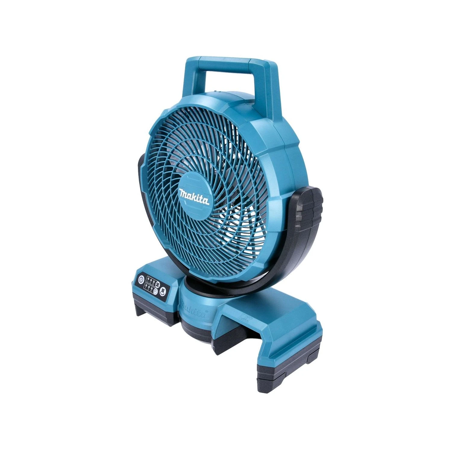 The Makita DCF203Z is a 14.4/18V LXT Portable Fan. The ideal solution to keeping cool on the job site, the Makita cordless 235mm LXT fan is compatible with 14.4V/18V LXT battery packs as well as an AC power adapter. The run time with 18V 6.0Ah battery is; With Oscillation (H/M/L) = 410 / 650 / 1,010 minutes, Without Oscillation (H/M/L) = 430 / 700 / 1,155 minutes. Providing 3 different speed settings and off timer so that you do not waste battery if you forget or are working away from the fan for a while. The adjustable hanging hook and the fact that the fan head is fully adjustable means you are always going to be able to find the optimum position for it. Supplied as a bare unit, with AC power cable.