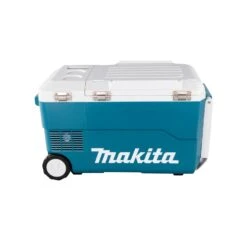 Keep your food & drink right at hand – and at the right temperature – with Makita’s cordless cooler & warmer box, the DCW180Z. This 20L cooler/warmer has 7 temperature settings, from -18°C to 60°C. You can power it using a choice of 3 power sources: Makita’s 18v LXT Li-Ion battery (two in parallel or one), the power adapter for your car’s cigarette lighter or mains supply. The light weight, hinged pull handle, detachable shoulder strap and large caster wheels offer easy portability.
