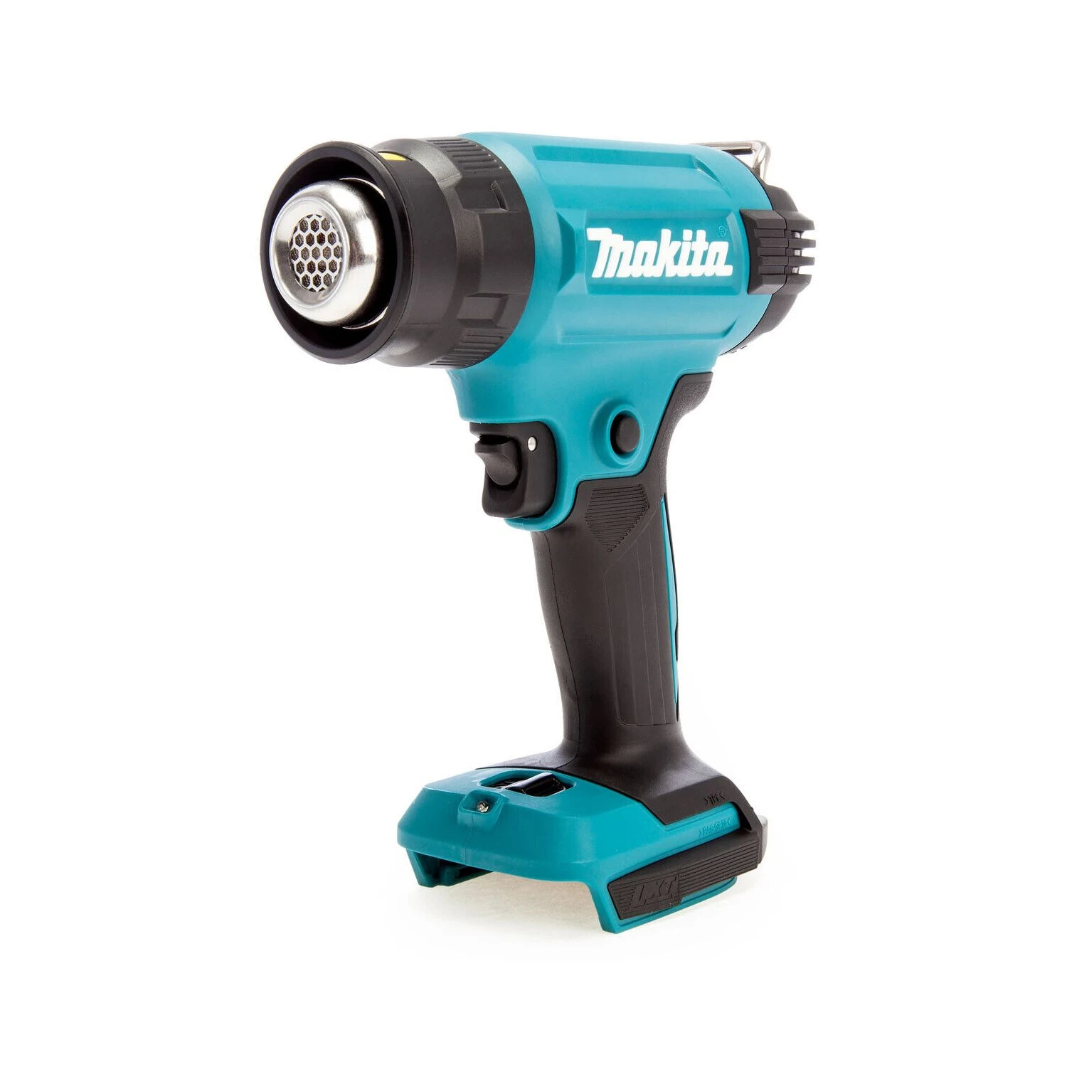 The Makita DHG181 is a Cordless 18V Heat Gun powered by an LXT Li-Ion battery. This highly adaptable machine has 2 speed settings for airflow and 6 different heat settings to suit varying applications. Featuring max 550 °C air temperature for a wide range of cordless works, such as putting up wall paper, drying or removal of paint and more.