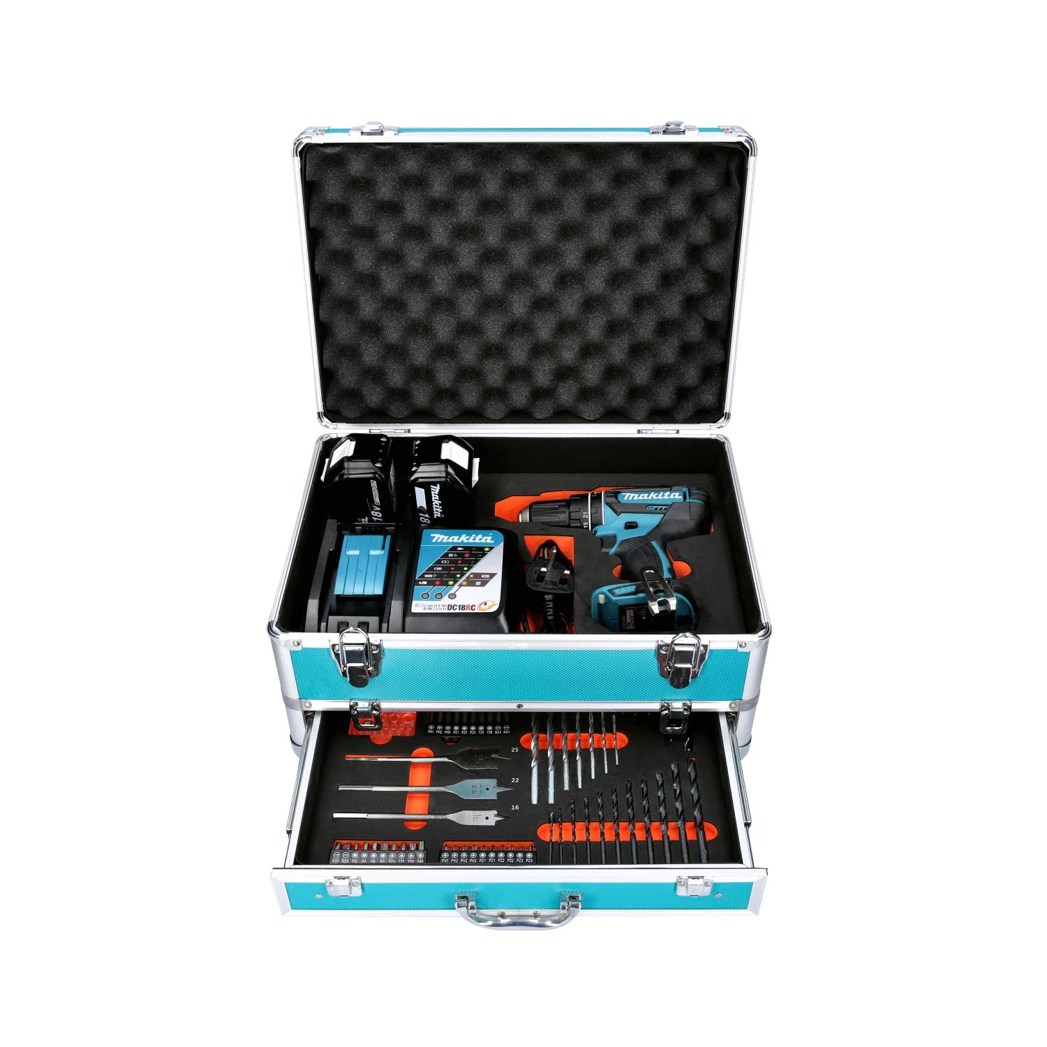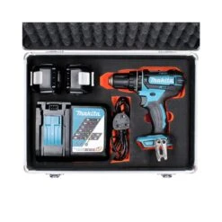 The Makita DHP482 is a compact Combi Drill with an overall length of only 198mm. Although small it is packed with features like 21 different torque settings, hammer action and bright twin LED joblights for working in dark conditions. It also has an all metal gearbox for a long life and a soft grip handle designed to maximise thrust right to the bit.