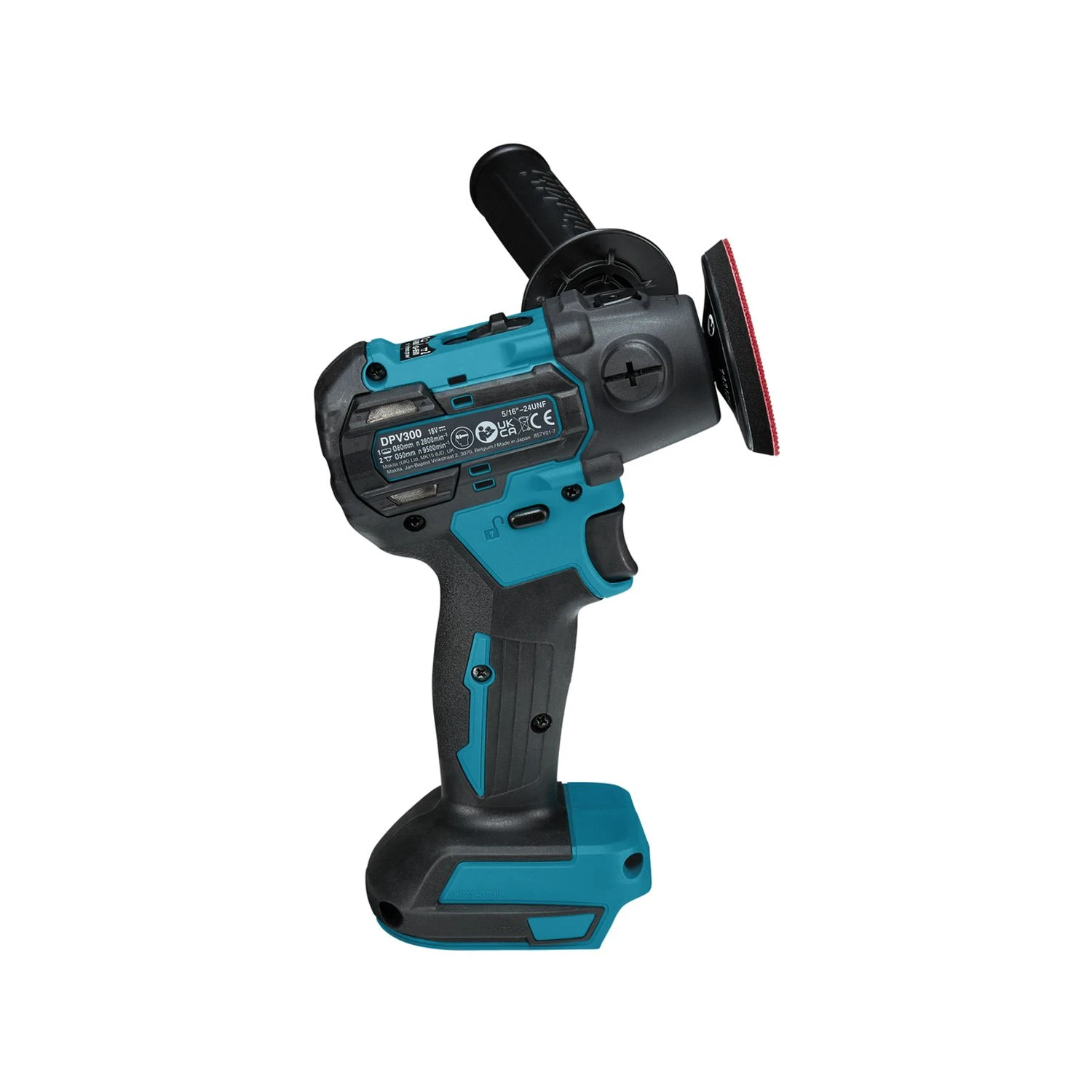 The DPV300Z features a brushless motor with a trigger lock and lock-on switch which lessens user fatigue. It includes an ergonomic soft grip, and an anti-restart function for user safety. The pad/disc is 50mm in diameter, with a polishing no-load speed of 0-2,800rpm and a sanding no-load speed of 0-9,500rpm.
