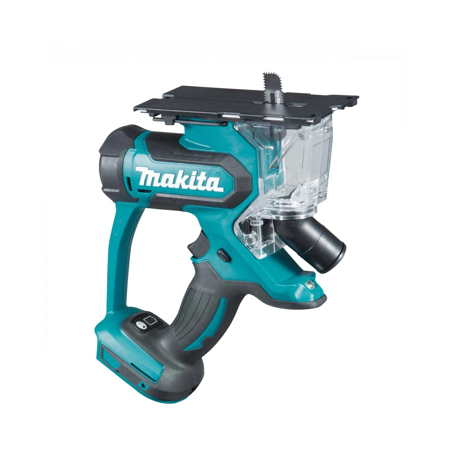 The Makita DSD180Z drywall cutter features excellent maneuverability achieved by the well balance design, allows for easy overhead application. For more practicality dust box is designed to catch dust in overhead application or be connected to dust extraction. Base cover protects the material from damage.