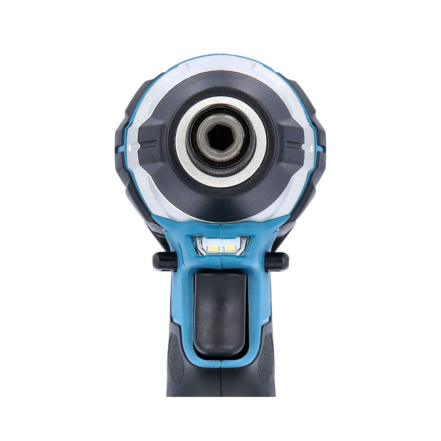 The new 18v Li-ion Impact Driver from Makita is an extremely light and versatile tool with its overall length being a very compact 137mm paired with its ergonomically designed soft grip handle. This cordless impact driver has an electric brake which cuts out the motor the moment the trigger is released. The variable speed control trigger on this Makita 18v driver allows any professional to have complete control over this power tool by simply adjusting the switch. The forward and reverse rotation settings on this Li-ion impact driver allows for a dual use of screwing in or removing nails and screws. The twin LED job light is perfect for any one who likes to work in all types of lighting condition. The high rotation speed on this 18v impact driver makes for a professional finish thanks to the enhanced motor. Changeover is simple with this cordless driver’s one-touch drill bit feature which means it’s easy to swap between drill parts in a touch. This driver is ergonomically designed to be compact with overall length of 137mm, and lightweight, weighing in at under 1kg. This driver also comes with a battery protection circuit.