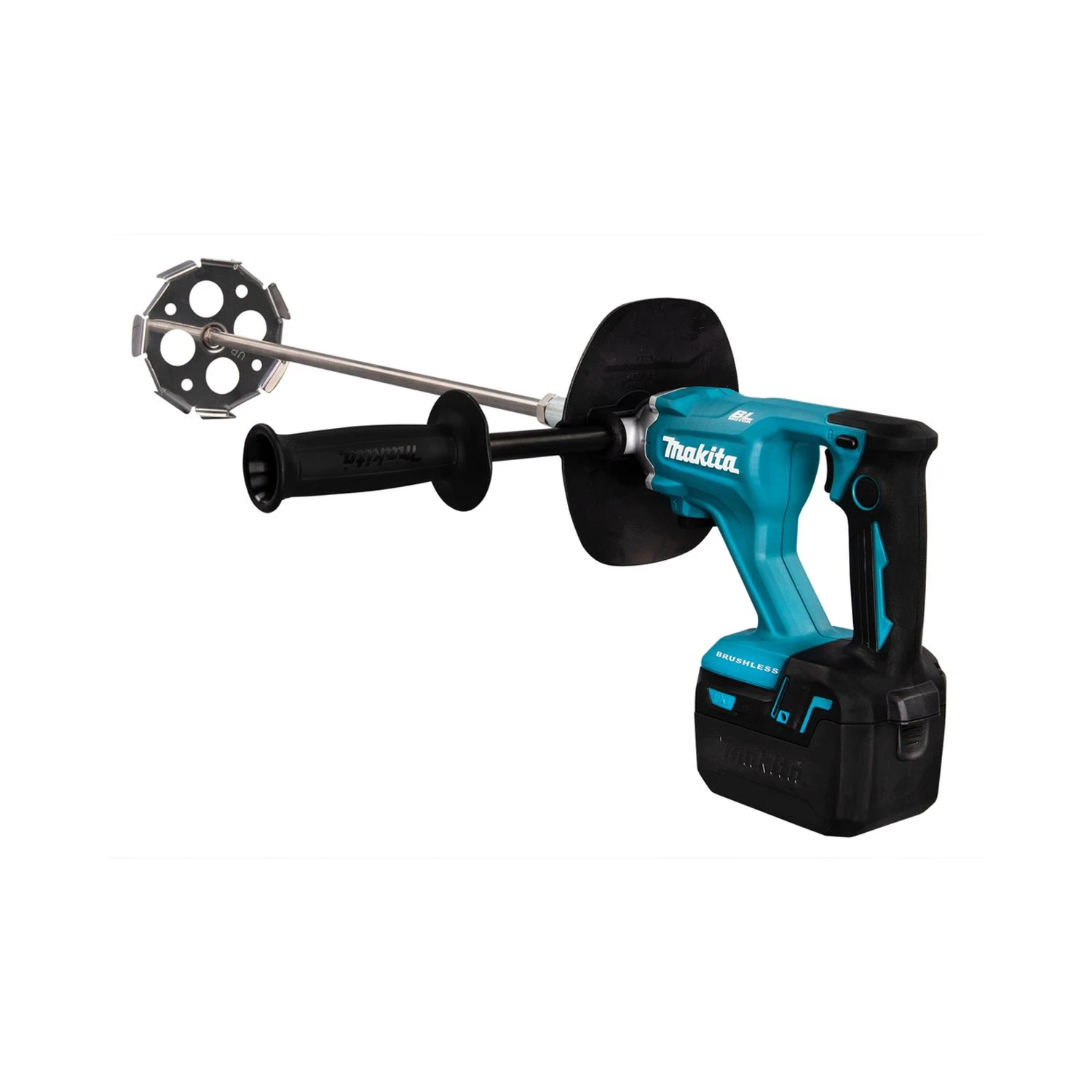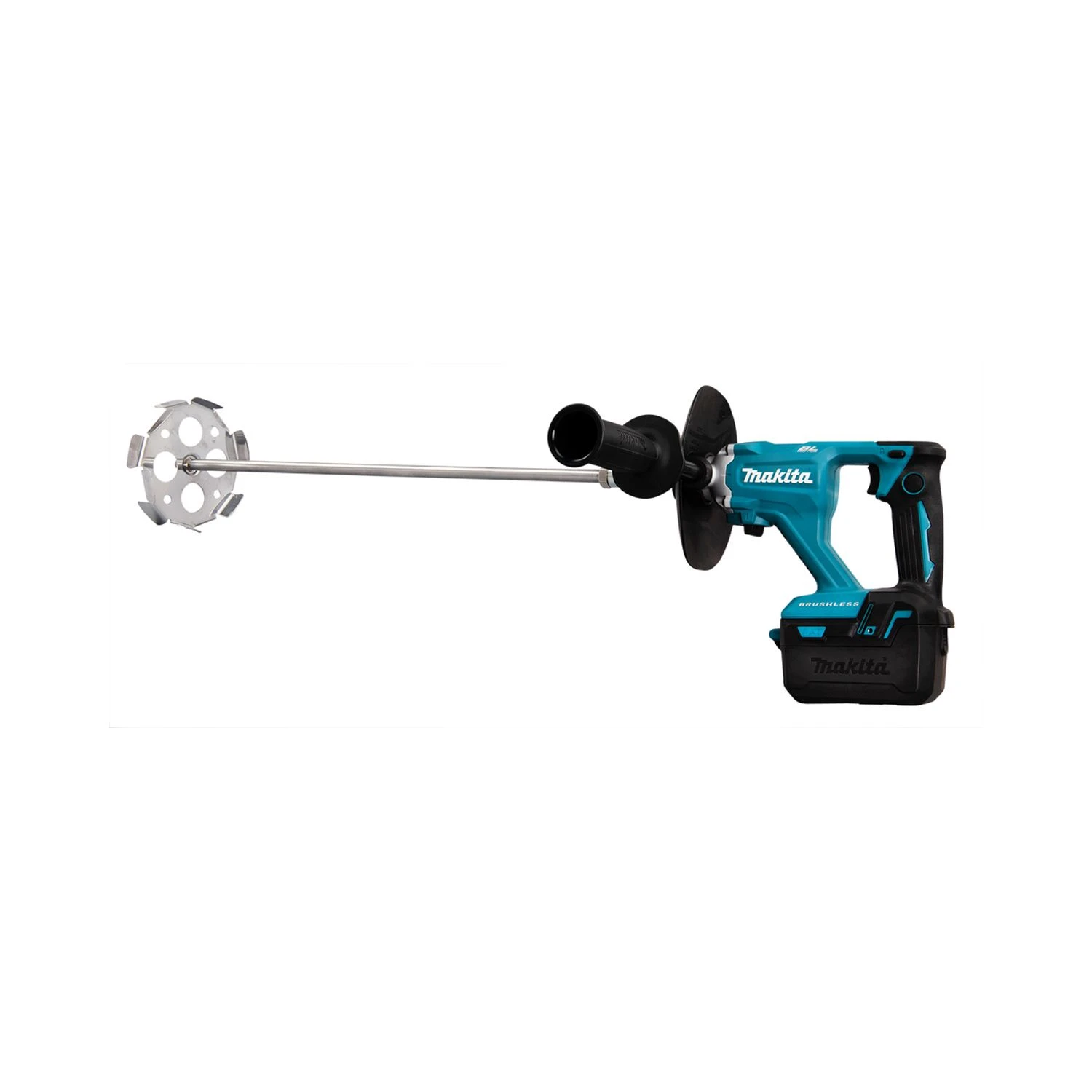 The Makita 18V LXT Brushless Mixer is ideal for professionals and DIYers. The brushless motor ensures maximum power even under load and longer tool life. It has a variable speed trigger and a mechanical 2-speed control for full control, the soft start also increases control and keeps the workplace clean and tidy with help from the splash guard. The lock-on switch reduces tiring for the user as it saves them having to hold the trigger on long jobs.