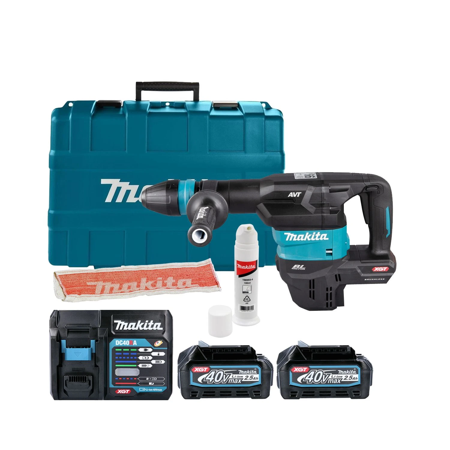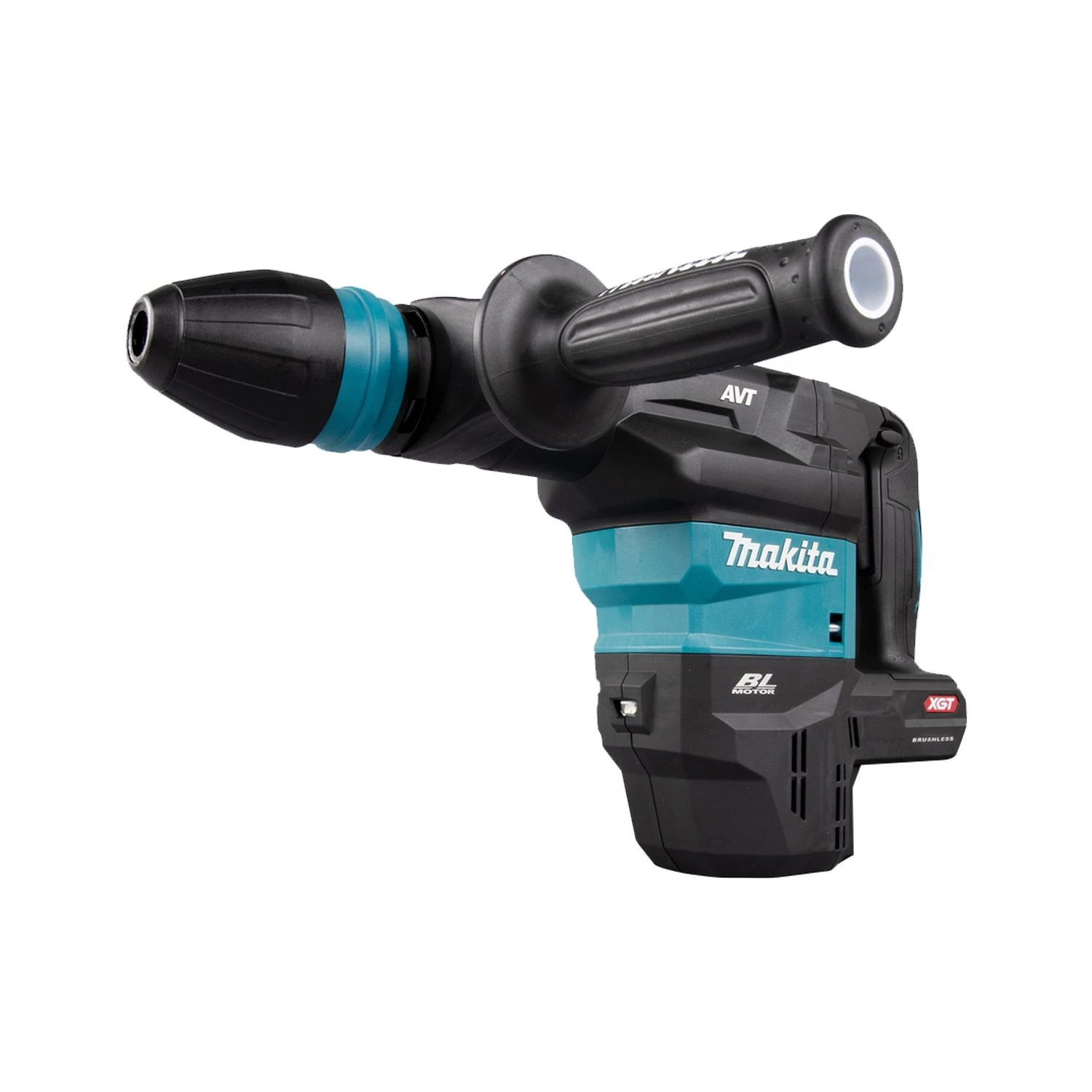 The Makita HM001GD202 is a cordless demolition hammer, powered only by the Makita 40v Max XGT Li-Ion battery packs, and using an SDS Max tool holder. Delivers the strength and power of a brushless motor whilst also reducing user fatigue and noise with it’s anti-vibration housing.