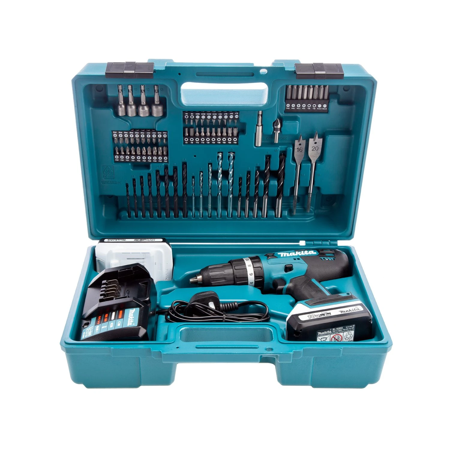 Plus, with 16 torque settings and pressure-controlled variable speed, you can take on a variety of precision tasks with maximum control, whether you’re laying decking or putting up shelves. This bundle kit includes a 74-piece Makita accessory kit along with the cordless combi drill, and comes with two powerful G-Series 18 volt batteries.