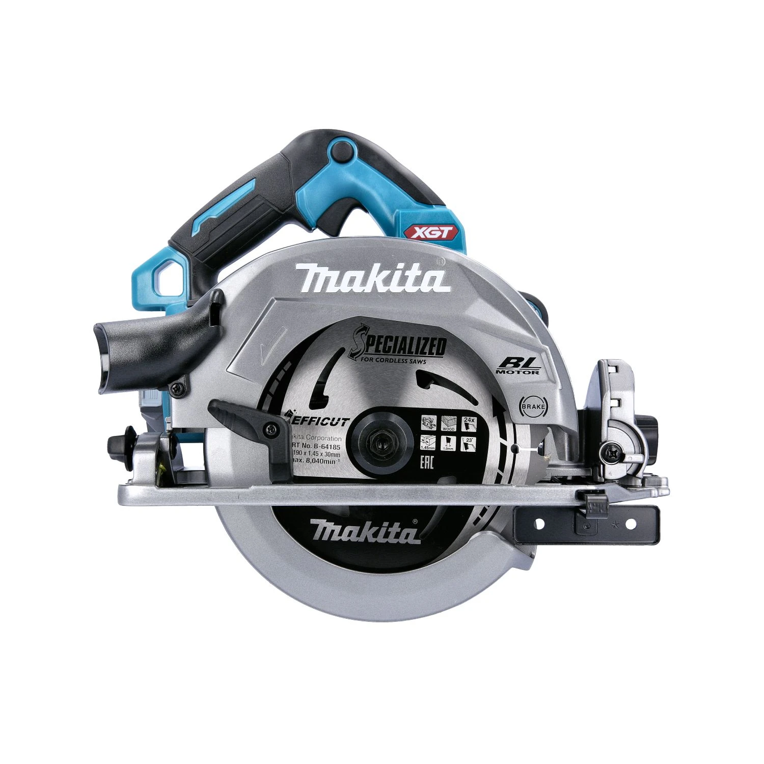 The Makita HS004G is a 40v Max XGT Brushless 190mm Circular Saw designed for high demand trade professional users. Packed with intelligent features; Automatic Torque Drive Technology: Automatically changes the cutting speed according to load condition for optimum operation. Auto-Start Wireless System (AWS) – connects to compatible dust extractors with Bluetooth. The dust extractor automatically runs while the switch is on. the HS004 is compatible with guide railwithout an adapter. With a compact, lightweight ergonomic design, for heavy-duty applications.