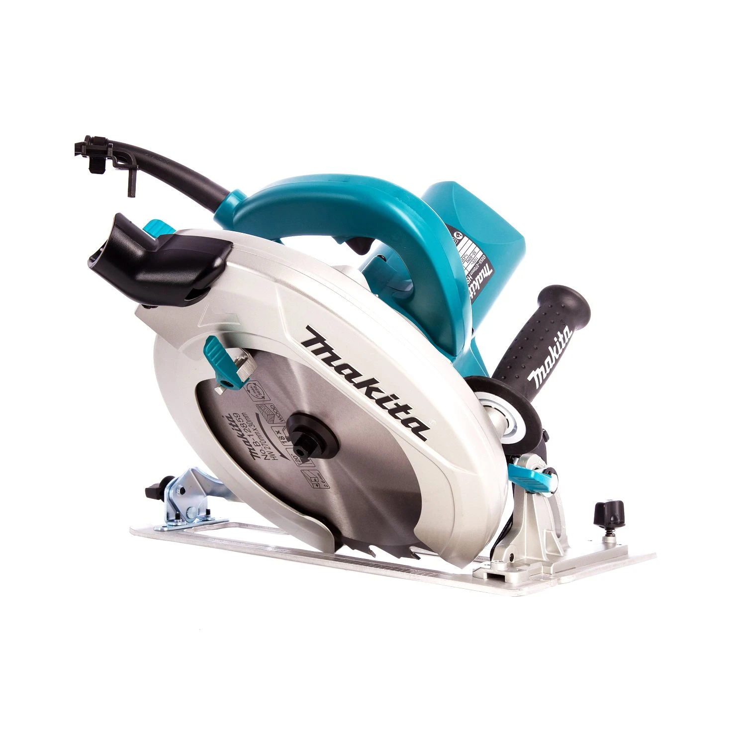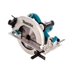 The Makita HS0600 255mm -270mm Circular Saw cuts 4x material in a single pass. It has a large cutting and bevel capacity (76mm at 90 degrees and 53mm at 45 degrees), with precision gearing and ball and needle bearing construction for smooth and efficient power transmission. Convenience features include an adjustable top guide to align notches with line-of-cut for improved accuracy, and auxiliary front and top handles positioned for comfort and control. The blade wrench is attached to the saw for fast blade changing, with a flat motor housing design for added convenience. The large, conveniently-located adjustment knobs and levers are engineered for easier adjustments.