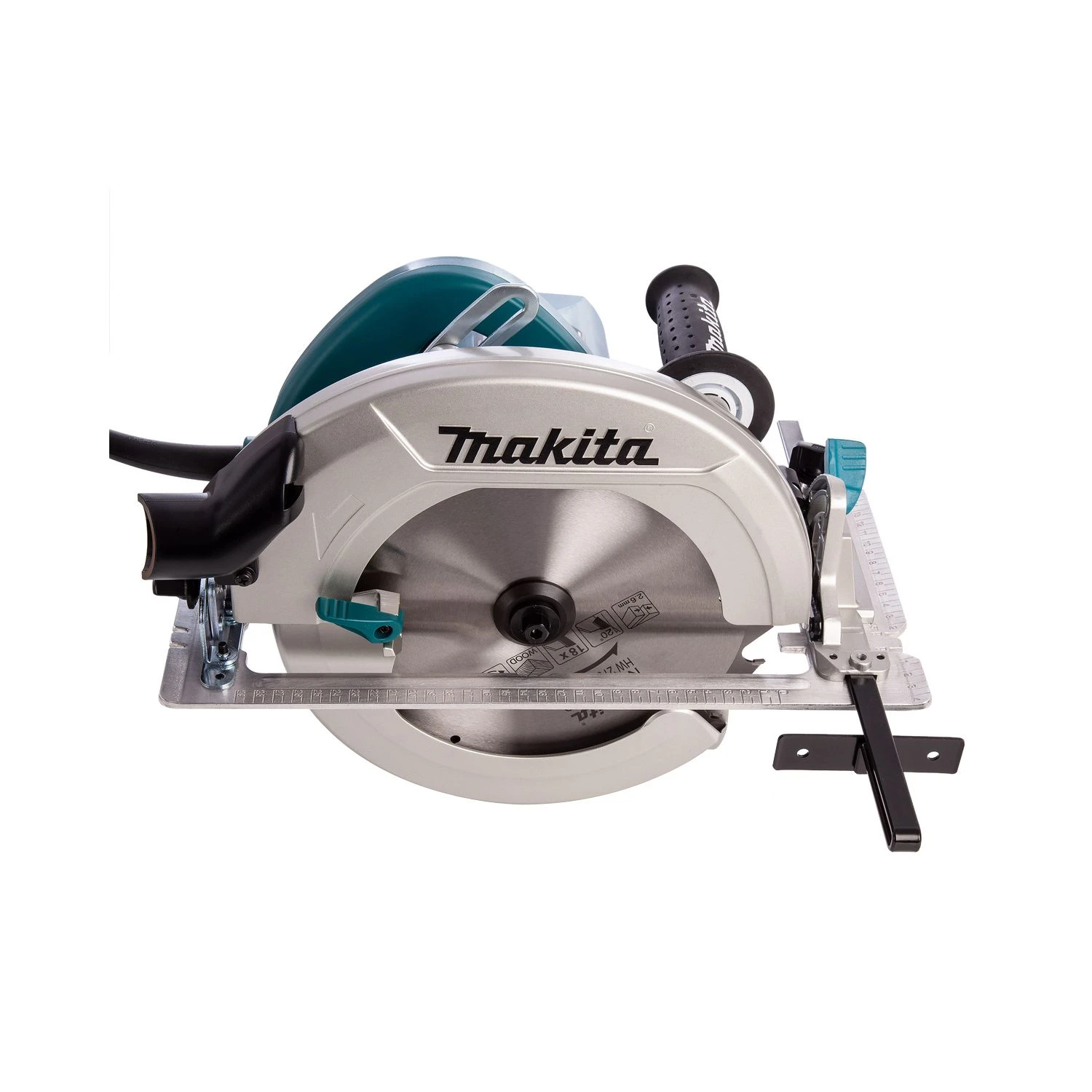The Makita HS0600 255mm -270mm Circular Saw cuts 4x material in a single pass. It has a large cutting and bevel capacity (76mm at 90 degrees and 53mm at 45 degrees), with precision gearing and ball and needle bearing construction for smooth and efficient power transmission. Convenience features include an adjustable top guide to align notches with line-of-cut for improved accuracy, and auxiliary front and top handles positioned for comfort and control. The blade wrench is attached to the saw for fast blade changing, with a flat motor housing design for added convenience. The large, conveniently-located adjustment knobs and levers are engineered for easier adjustments.