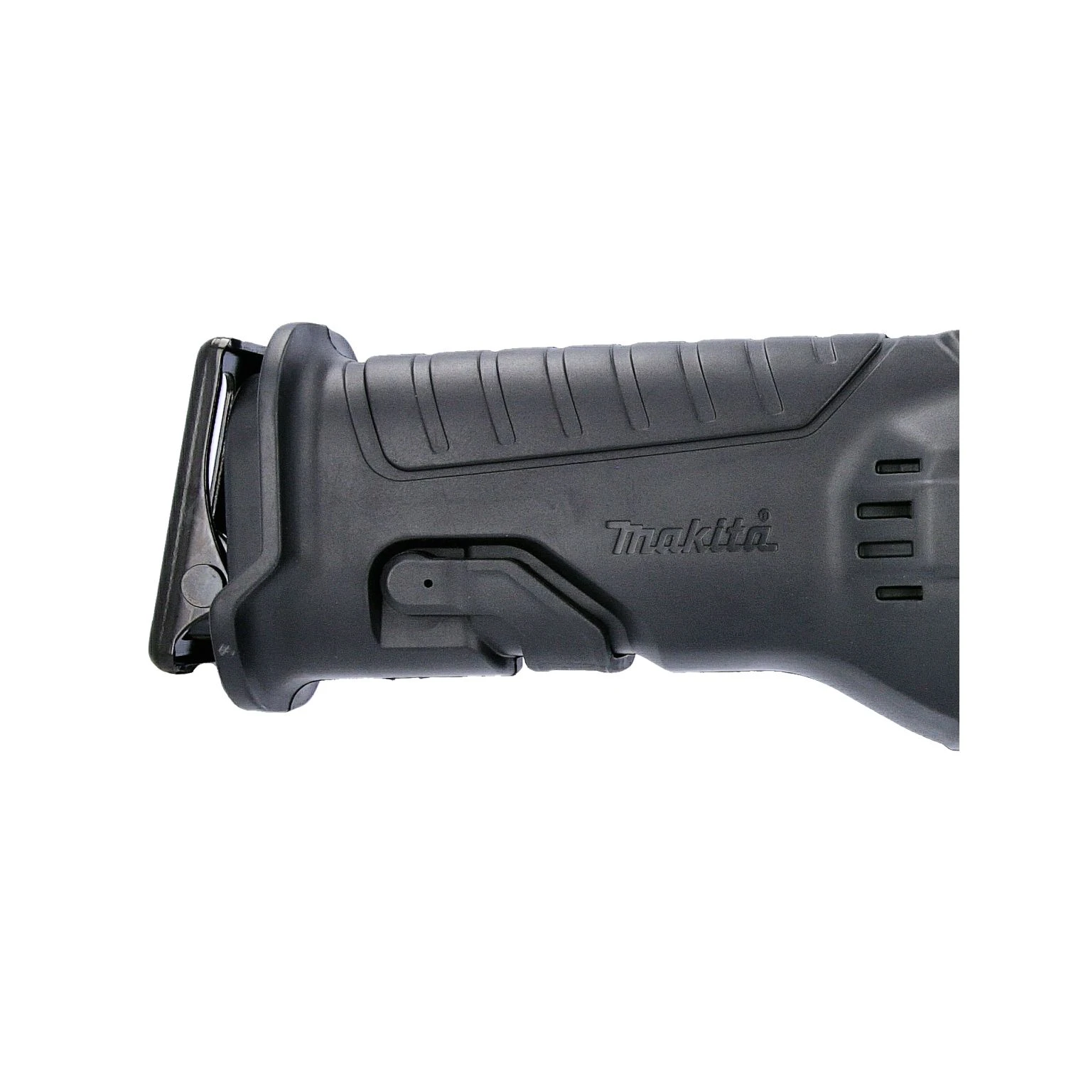 The Makita cordless reciprocating saw powered by 40Vmax XGT Li-Ion battery. The XGT range is a system that combines innovative tool design with high output batteries. The XGT range of tools and batteries have a built-in program, that provides digital communication between the tool and batteries. XGT is built tough. The Makita cordless reciprocating sabre saw powered by the Makita 40V Max XGT Li-Ion battery packs. The Makita brushless saw has a brushless motor which is precision engineered to be up to 50% more efficient than a comparative model. The electric brake on this Makita reciprocating saw provides you with a safe and easy to use tool. This Makita XGT reciprocating saw features electronic 2-speed selection giving the user ultimate control over the power tool and the speed at which tasks are completed, adapted to wood and metal. This 40v saw with blade set has a variable speed control with different speed settings; this improves the user’s experience, increases task speed and increases productivity throughout the day. The constant speed control on this brushless saw ensures that the job is carried out at a consistent speed and quality. The attached LED job light on this saw set helps for consistent clear visuals when performing tasks in different lighting conditions. The batteries are designed to include impact-absorbing padding and a heavy-duty outer casing. The tools them self-have been built to include added housing and battery terminal strength. Well balanced and ergonomically designed, with outstanding performance in continuous heavy-duty applications. Also features a joist hook, a tool-less shoe adjustment, a tool-less blade change and blade ejection lever.