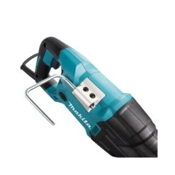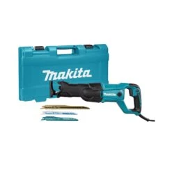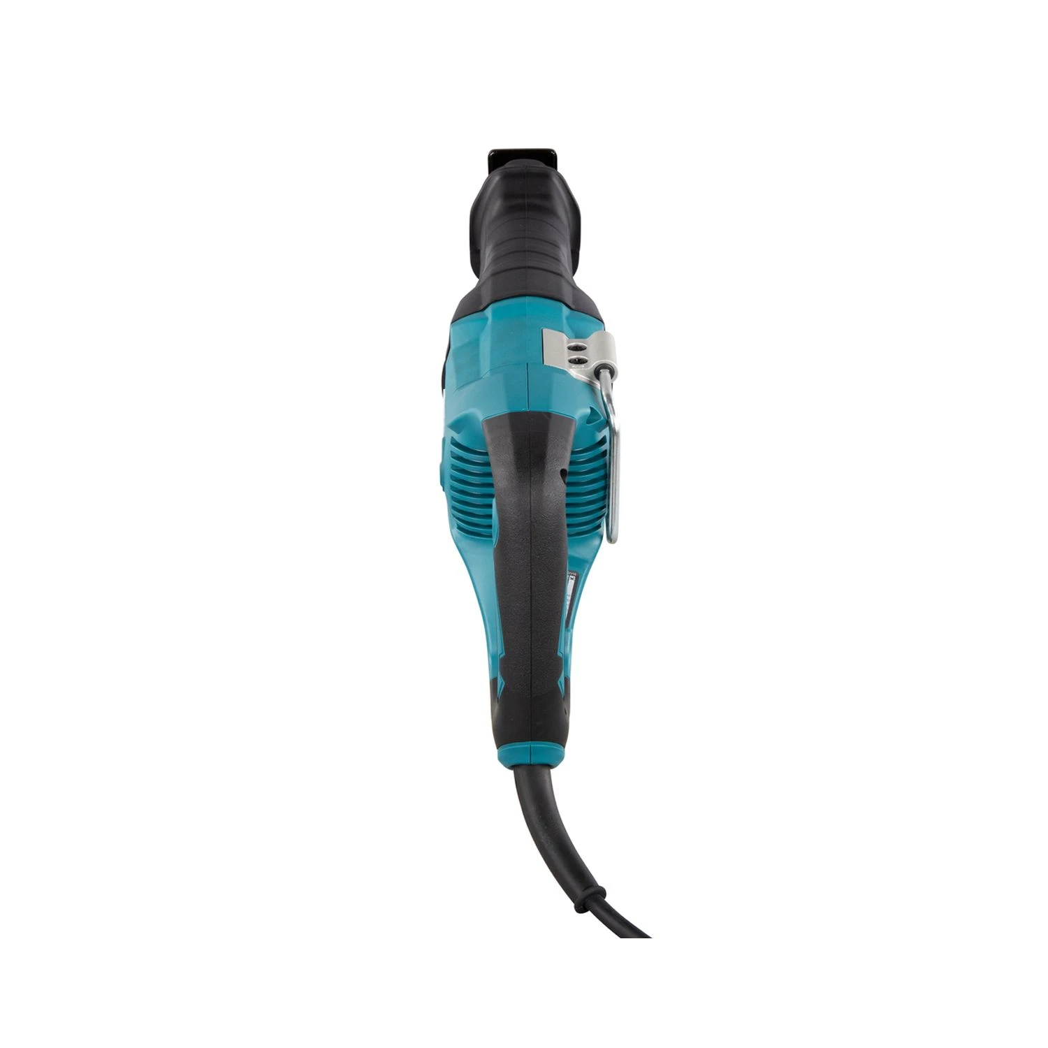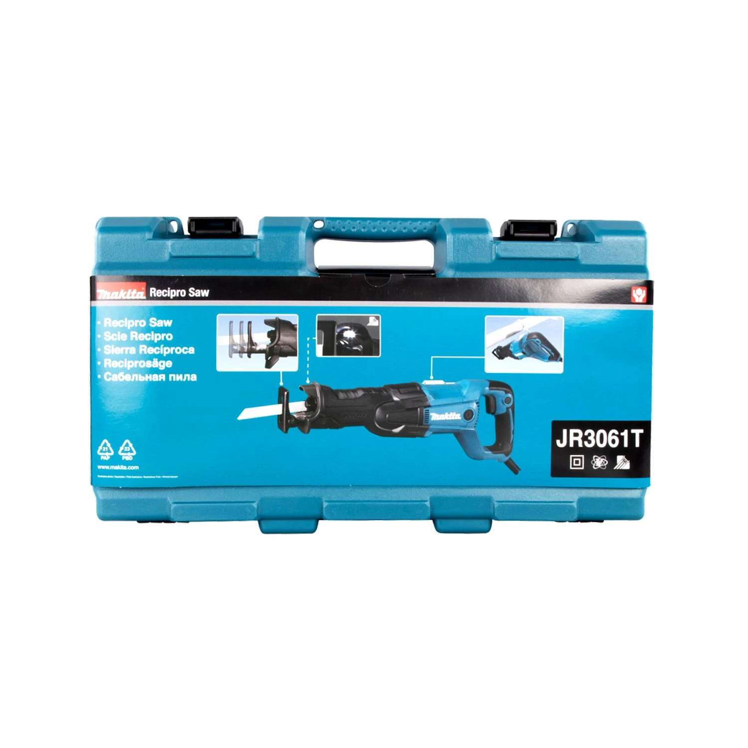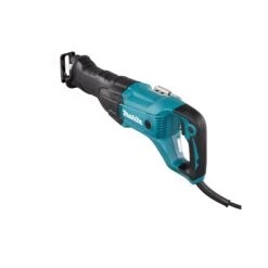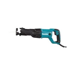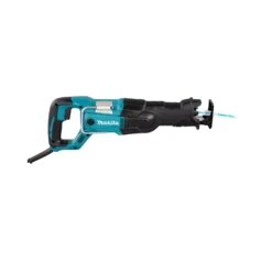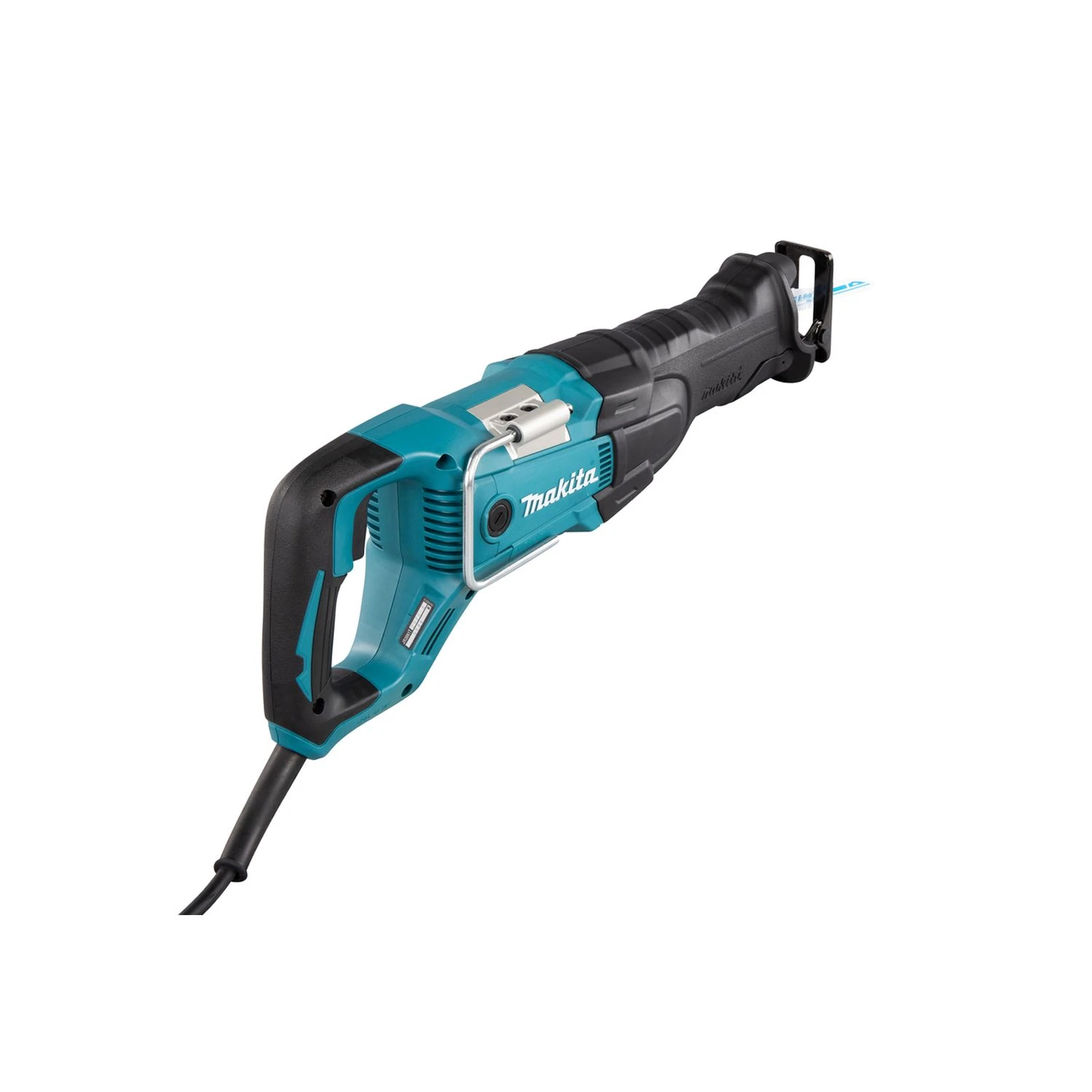 The Makita JR3061T Corded 110v Reciprocating Saw is a powerful tool which offers a max cut of 255mm in wood and 130mmØ in pipe. The saw features an ergonomic soft grip for improved comfort, and a trigger-operated variable speed control for maximum control. Blade deflection from the aiming point is minimised thanks to the vertical crank, and the one-touch tool-less blade change means the blade can be exchanged easily and quickly. The incorporated LED job light allows the user to illumiunate the workspace, and a retractable joist hook ensures easy storage. Ideal for trade professionals and DIY enthusiasts.