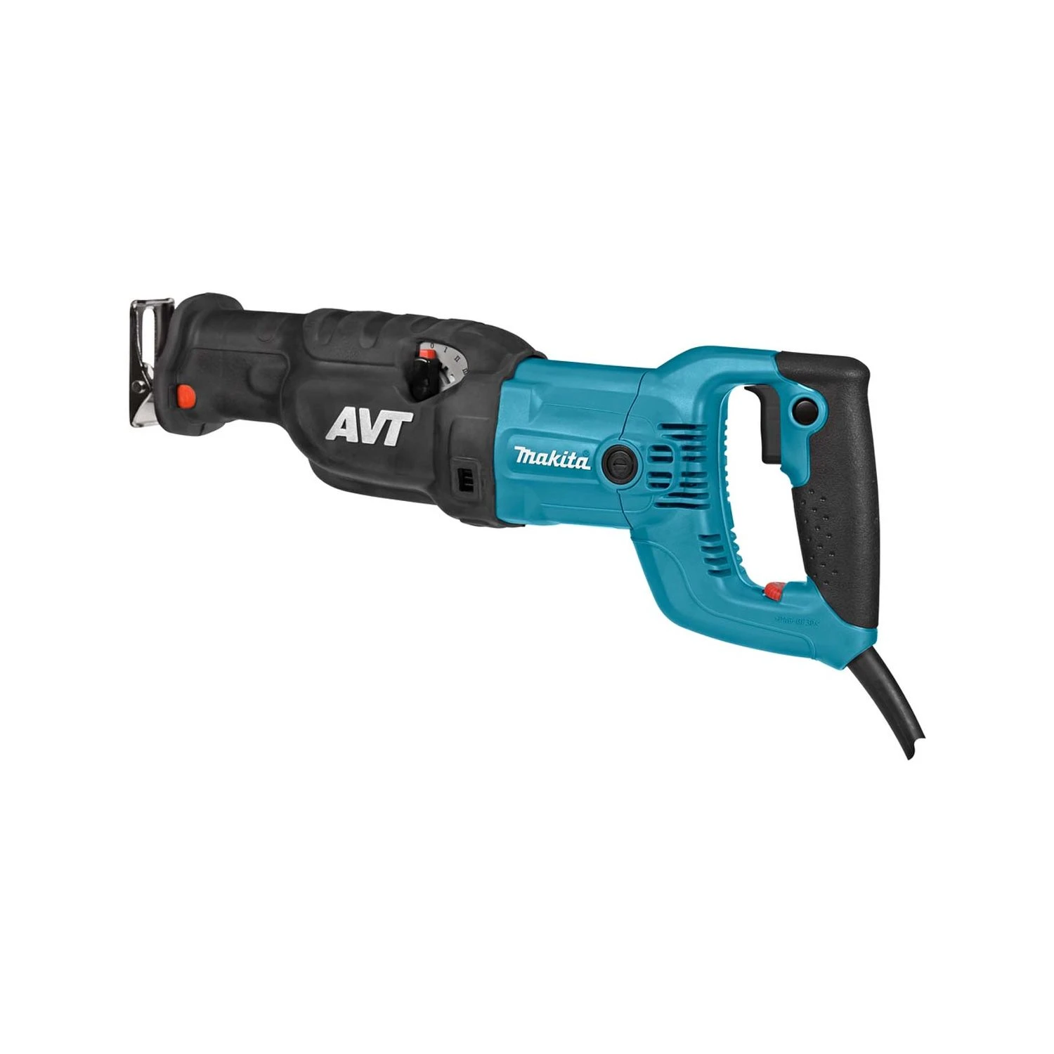 The JR3070 has a powerful 15 AMP motor with electronic speed control which enables it to maintain constant speed under load. The built-in clutch reduces gear damage by disengaging the gears if the blade binds. 4-position orbital / straight cutting action. The Anti Vibration Technology coupled with a shock absorbing handle dramatically cut down on vibration being transferred to the operator. Makita’s Anti Vibration Technology works with an internal balancer which is moved by the air pressure created inside the drill housing. The balancer moves in the opposite direction thus acting as a perfectly timed counterbalance. Variable speed control dial enables user to match the speed to the application. The saw has a 32mm long stroke for faster cutting.