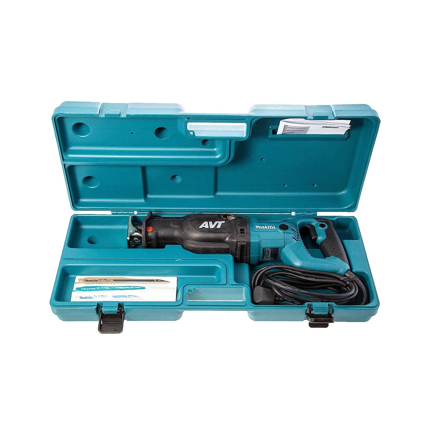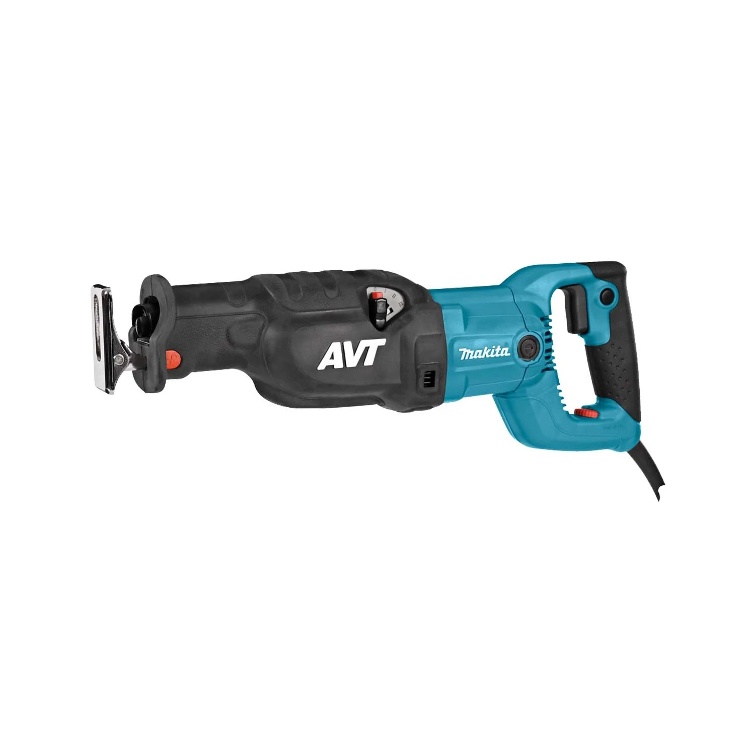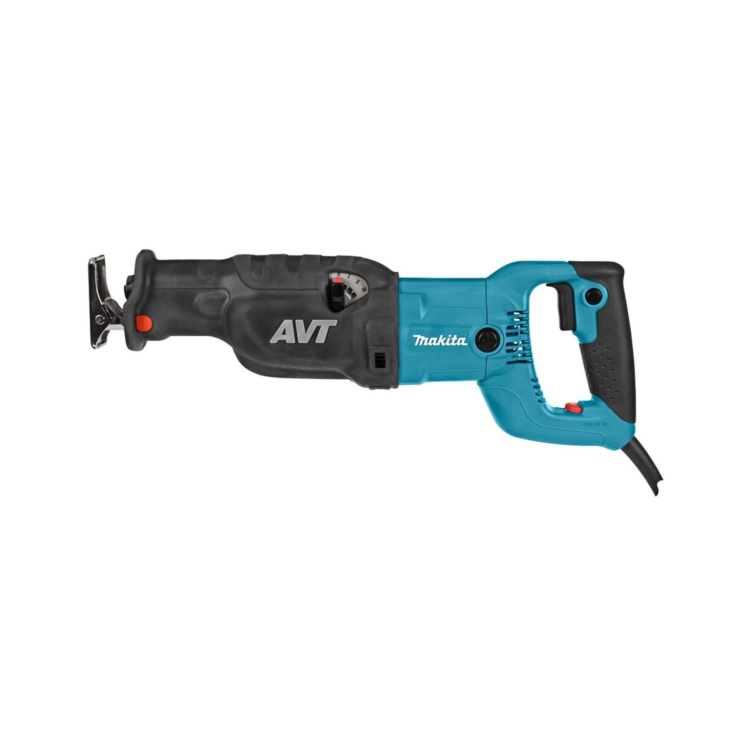 The JR3070 has a powerful 15 AMP motor with electronic speed control which enables it to maintain constant speed under load. The built-in clutch reduces gear damage by disengaging the gears if the blade binds. 4-position orbital / straight cutting action. The Anti Vibration Technology coupled with a shock absorbing handle dramatically cut down on vibration being transferred to the operator. Makita’s Anti Vibration Technology works with an internal balancer which is moved by the air pressure created inside the drill housing. The balancer moves in the opposite direction thus acting as a perfectly timed counterbalance. Variable speed control dial enables user to match the speed to the application. The saw has a 32mm long stroke for faster cutting.