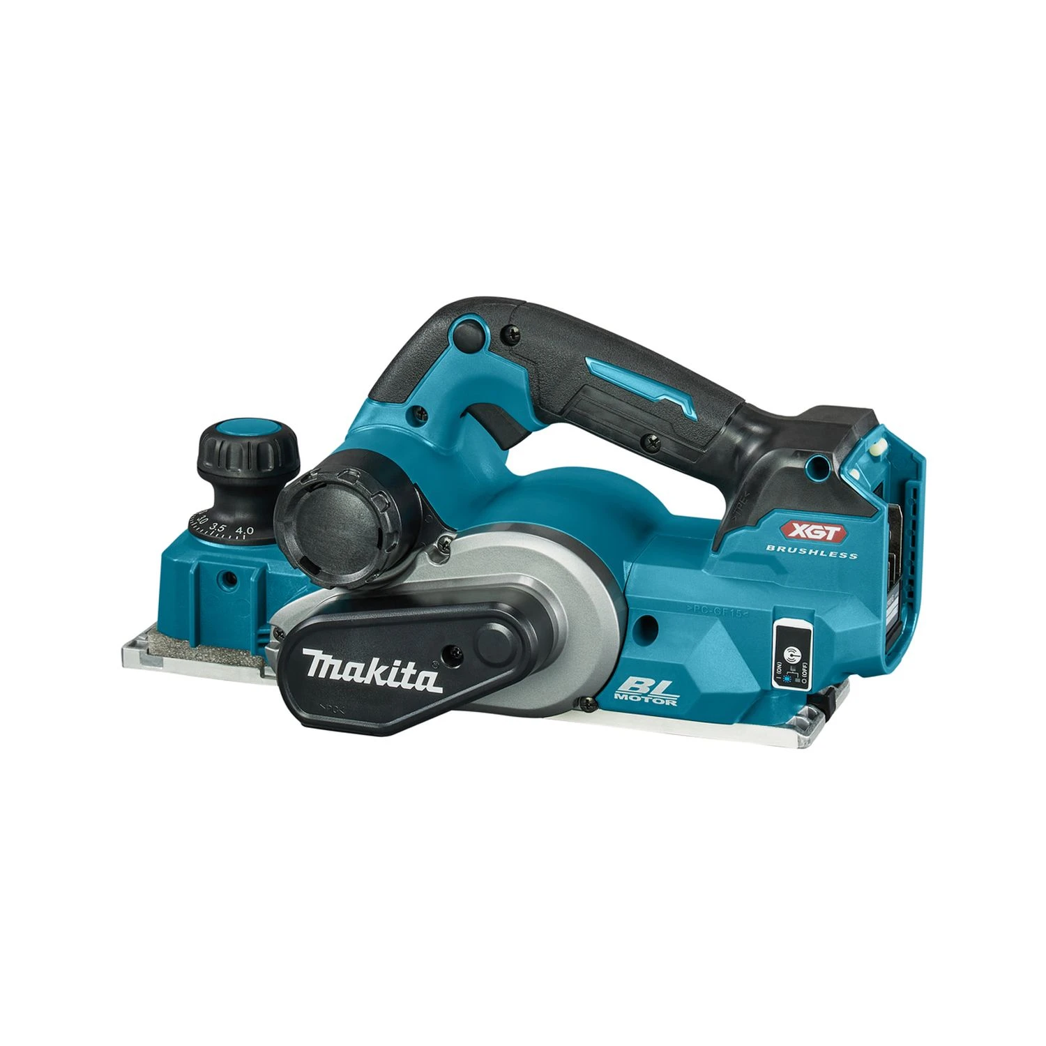 The Model KP001G is an 82mm planer powered by a 40V Max XGT Li-Ion battery. Features Makita’s Auto-Start Wireless System (AWS) – connects to compatible dust extractors with Bluetooth. The dust extractor automatically runs while the switch is on.