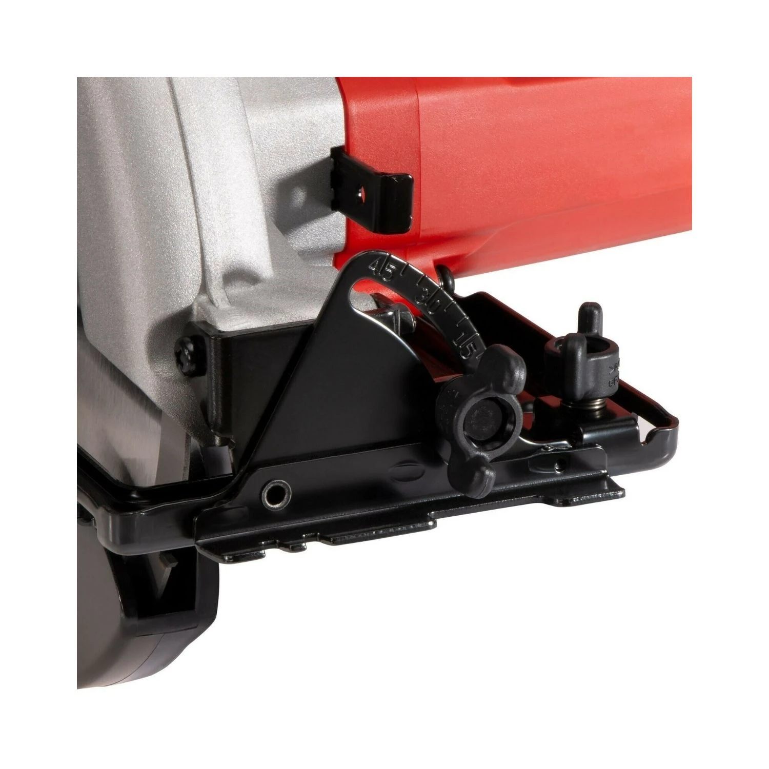 The Makita M5802 MT Series 190mm Circular Saw bevel cuts 0 up to 45 degrees for the most common cutting applications it also has a rear angular guide to allow the user to adjust the bevel angle, for smooth and precise straight cuts. It has a powerful 1,050 watt motor that will deliver up to 4,900 rpm for smooth cutting. It features a two stage safety trigger switch to prevent accidental start-up with a ergonomically designed handle, soft grip covered with non-slip elastomer, that fits the user’s hand perfectly to provide maximum control and comfort when in use.