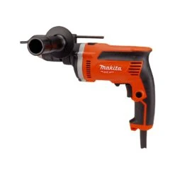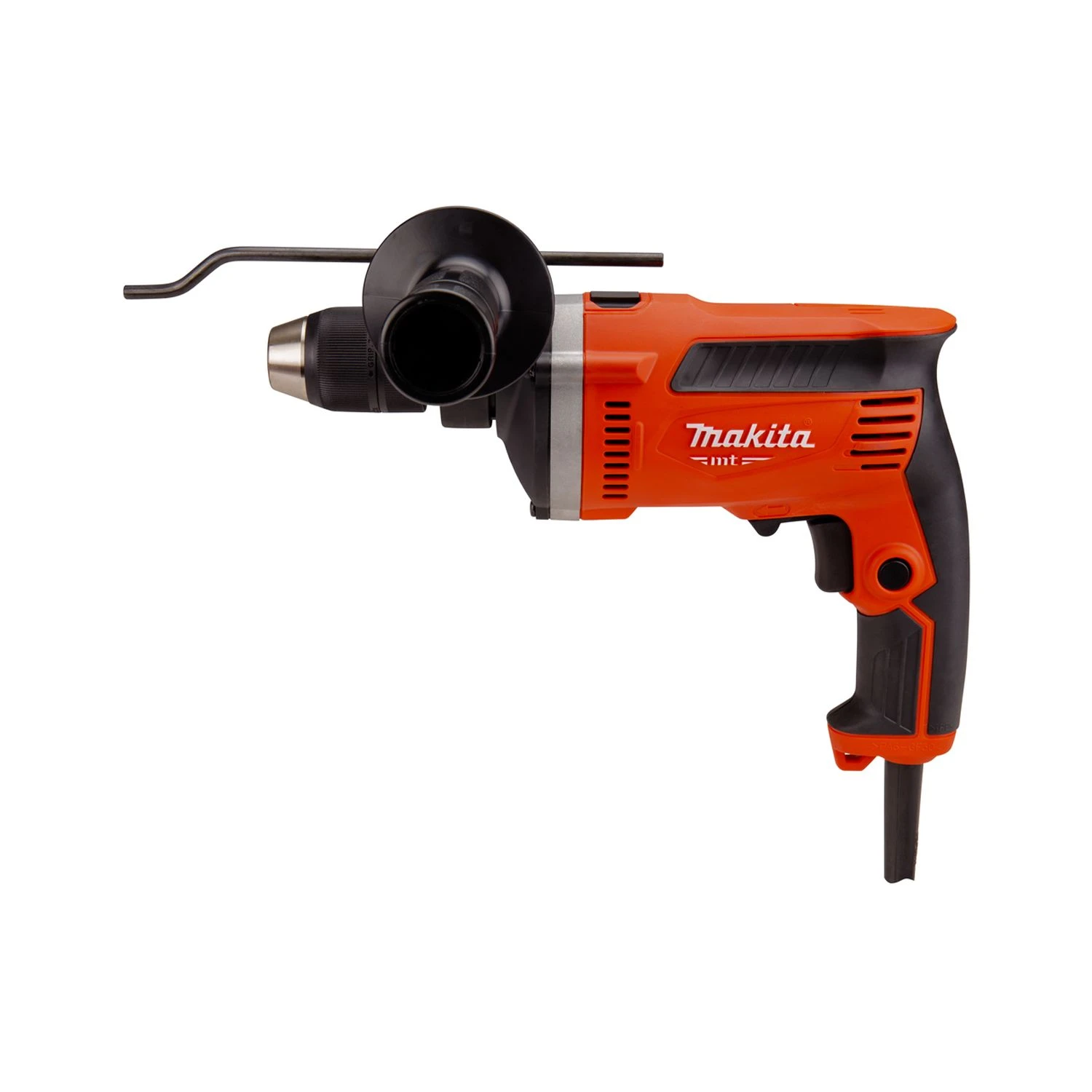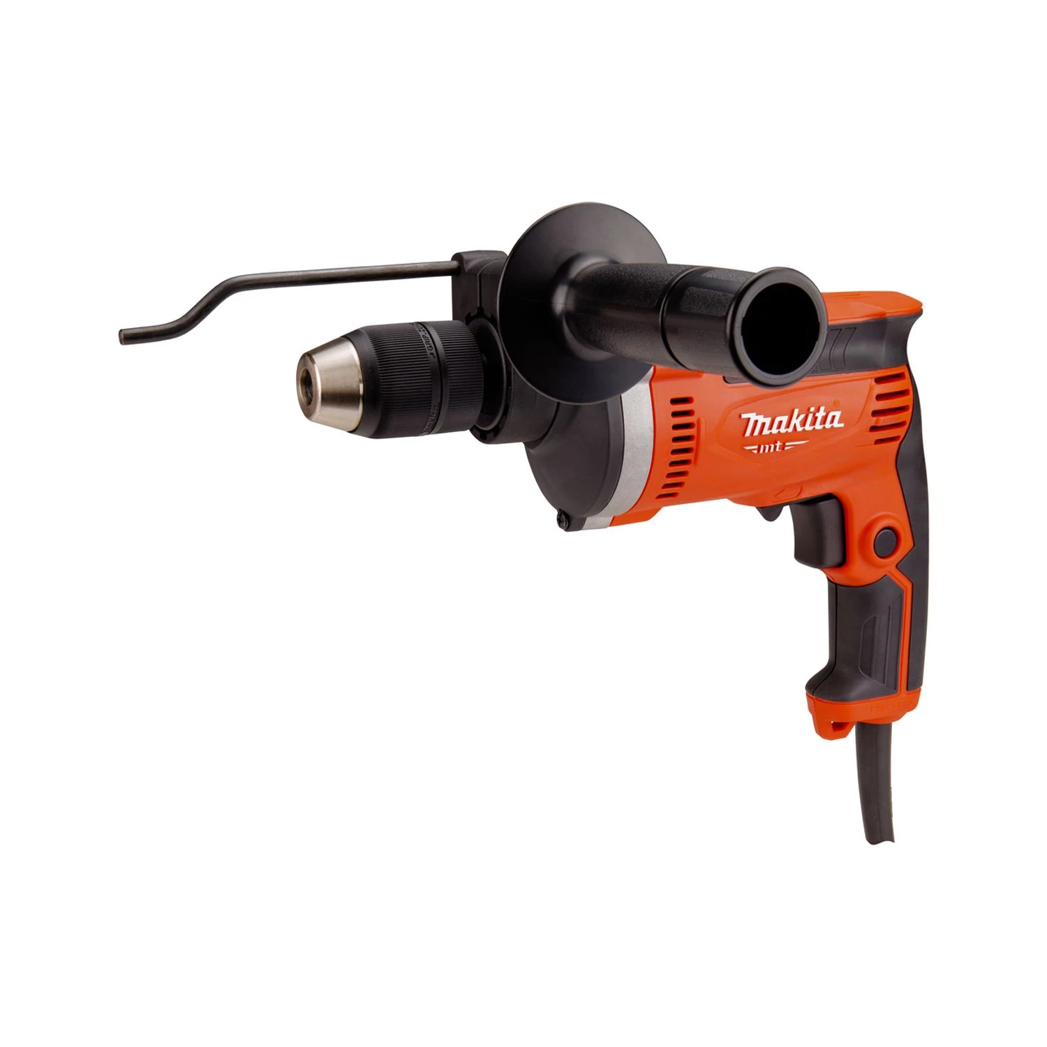 The Makita M8101K MT Series Percussion Drill is powered by a 710 watt motor that will deliver up to 48,000 ipm and 3,200 rpm. The Percussion Drill has and ergonomically designed cylindrical motor housing and is equipped with a variable speed control trigger to allow the user to adjust the speed based on the material or application. Its conveniently located forward/reverse lever, and 2 mode switch allows for fast mode changes between hammer with rotary or rotary only.