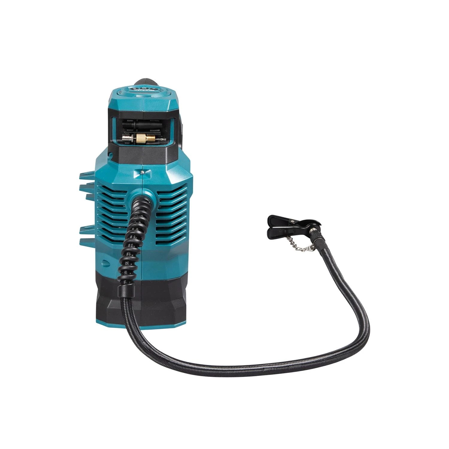 The Makita MP001GD103 40V 2.5Ah XGT Inflator Kit is ideal for professional mechanics and DIY enthusiasts. This cordless 40V inflator delivers impressive results that are equal to a corded machine. Three inflations are at your disposal with the highest able to give an air discharge amount of 24 litres/min. Weighing only 3.kg with the battery and featuring a long 65cm hose you will be able to access difficult to reach and tight areas. To protect the machine Makita have fitted a thermostat that is activated when the pump temperature increases. The ergonomic handle is soft grip to lessen fatigue over prolonged use. Sold as a kit that includes a 2.5Ah battery, a charger and sport ball needle adaptor.