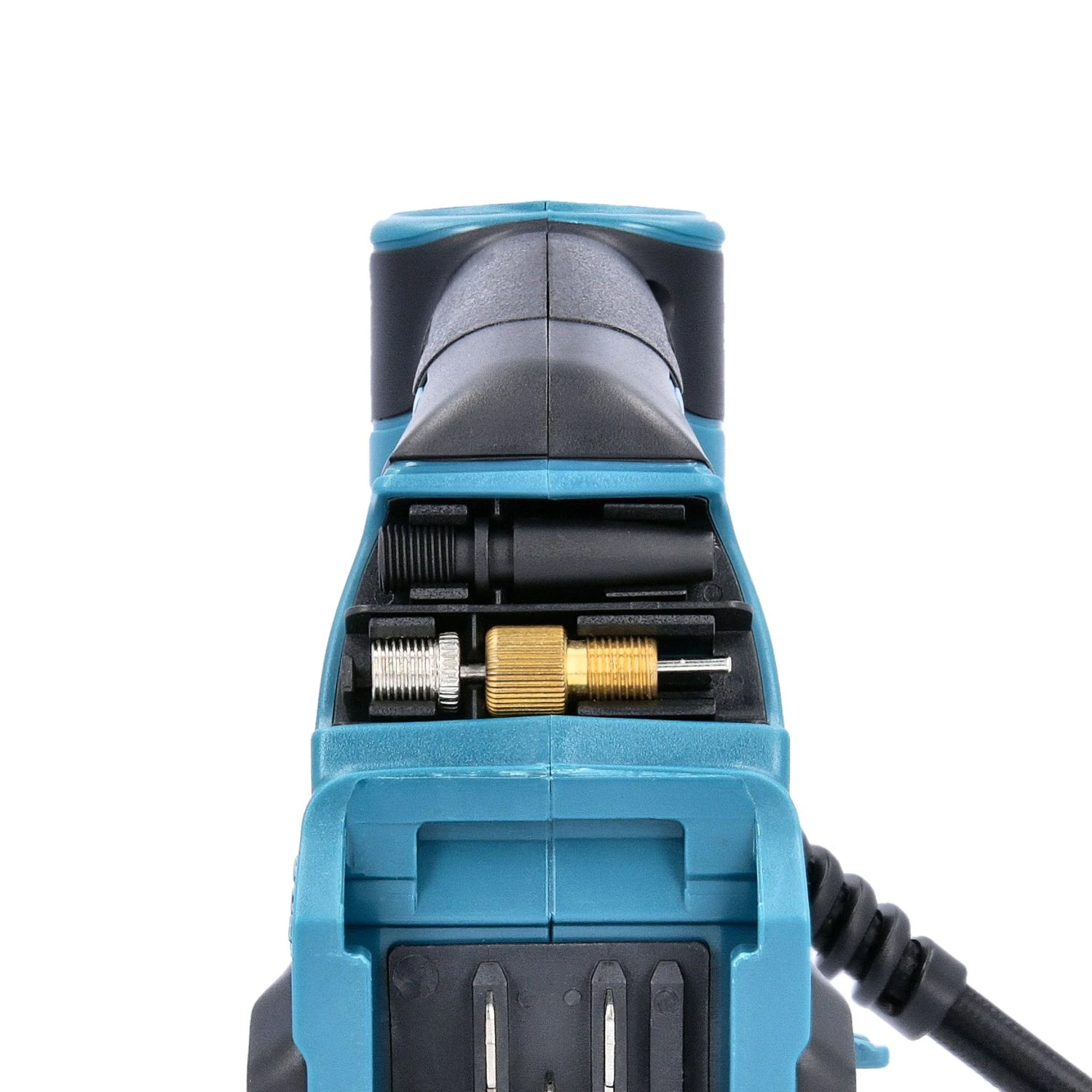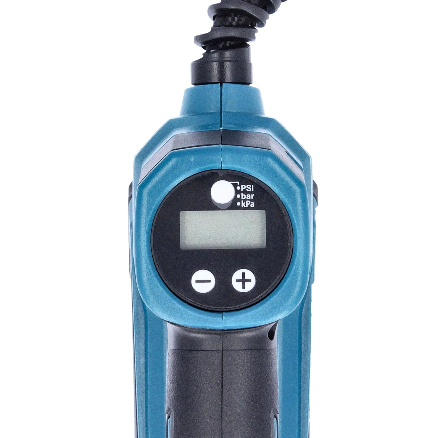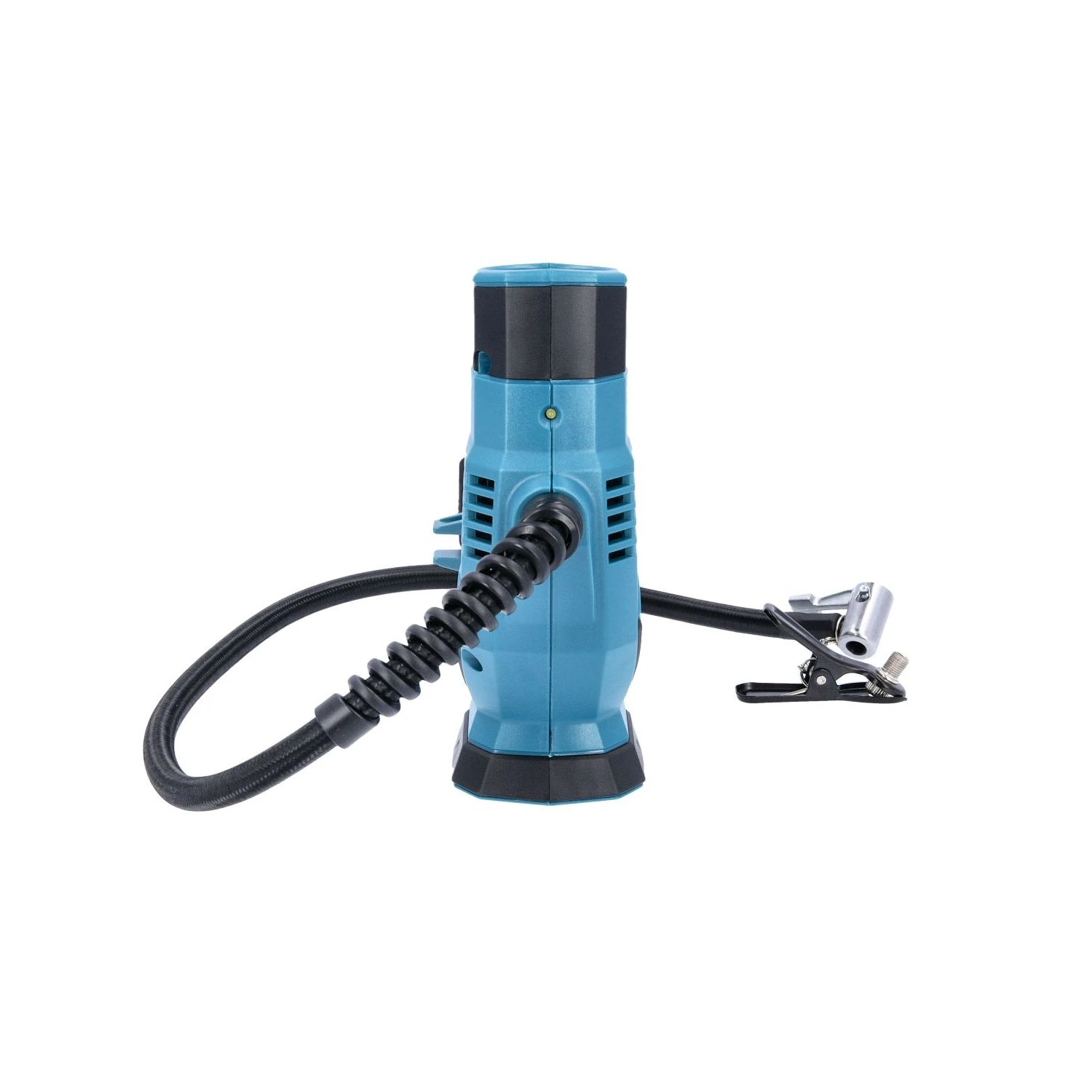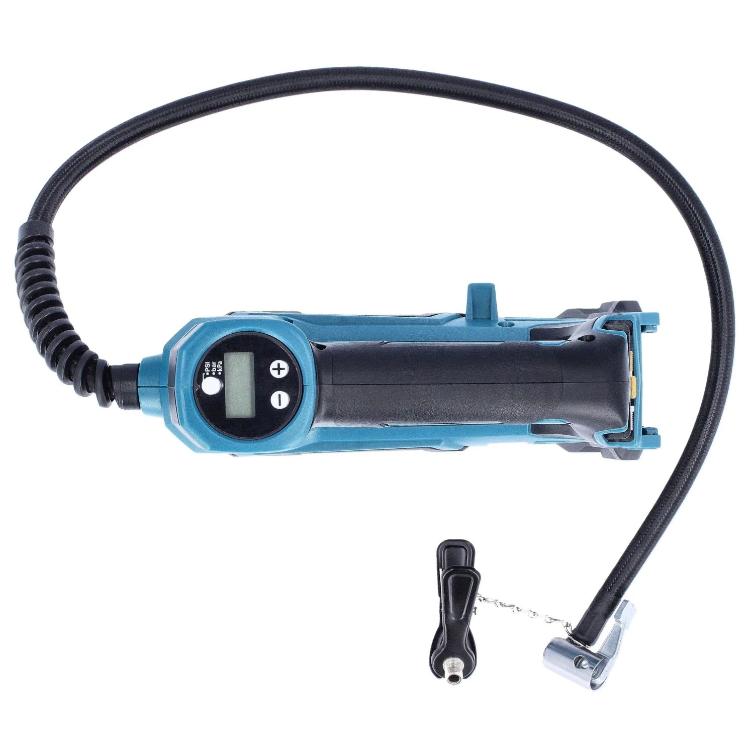 The Makita MP100DZ is a 12Vmax cordless compact inflator suitable for inflating bicycle and vehicle tyres as well as sports balls and inflatable leisure equipment. The 12Vmax CXT powered inflator is portable and easy to take anywhere. Auto shut-off technology delivers highly accurate pressure, protects from overfill, and automatically senses the speed of fill to deliver precise shut-off at the desired PSI. Fitted with an LED job light for dimly lit areas. Supplied with a range of adaptors.