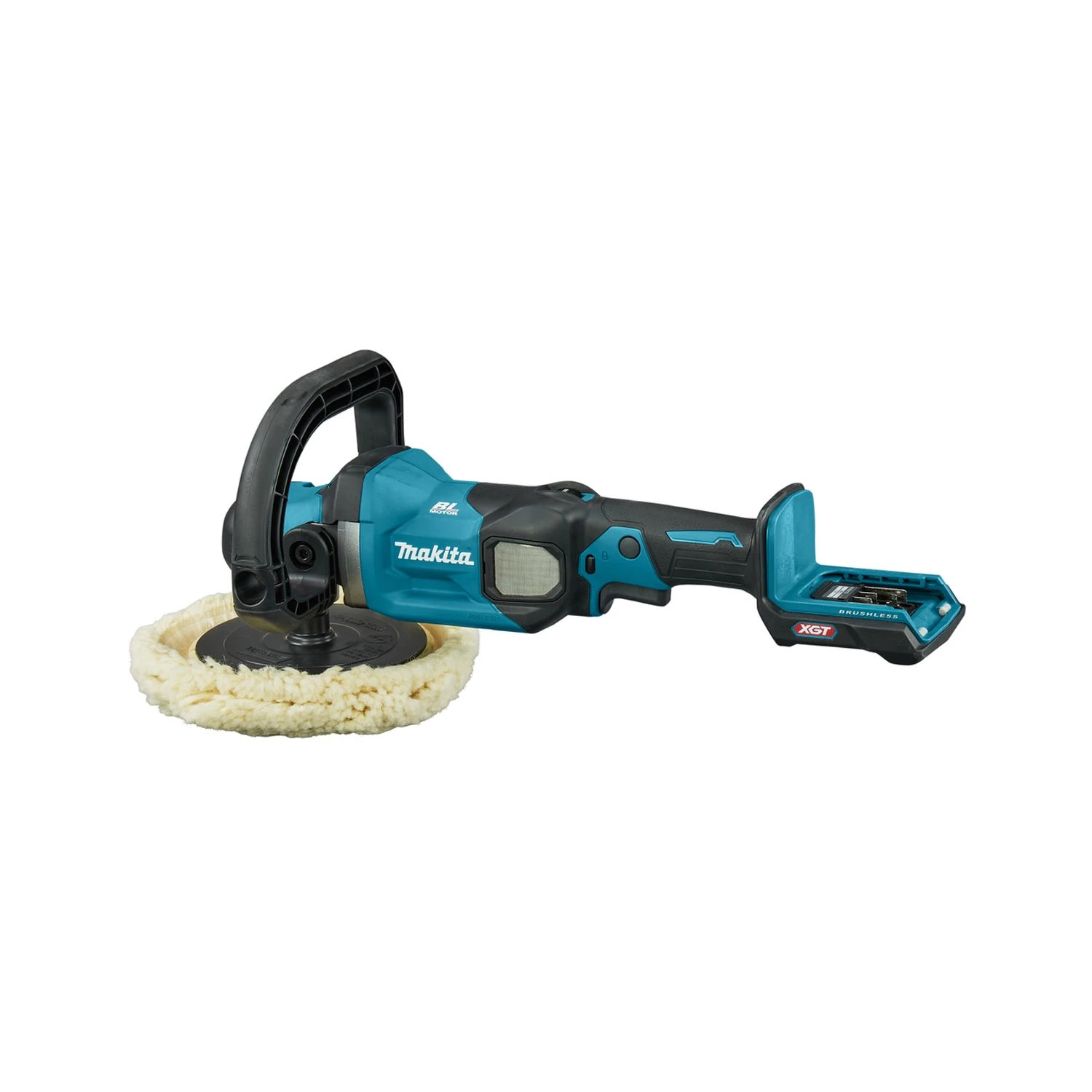 The PV001GD201 is an 180mm (7″) brushless polisher powered by a 40V Max XGT Li-Ion battery. Designed mainly for polishing applications in the car painting industry. Features a variable speed control dial with indication of max rotation speed. Lower max rotation speed used for polishing curved portions, narrow spaces or for finish polishing and a higher max rotation speed is used for scratch removal with polishing compound.